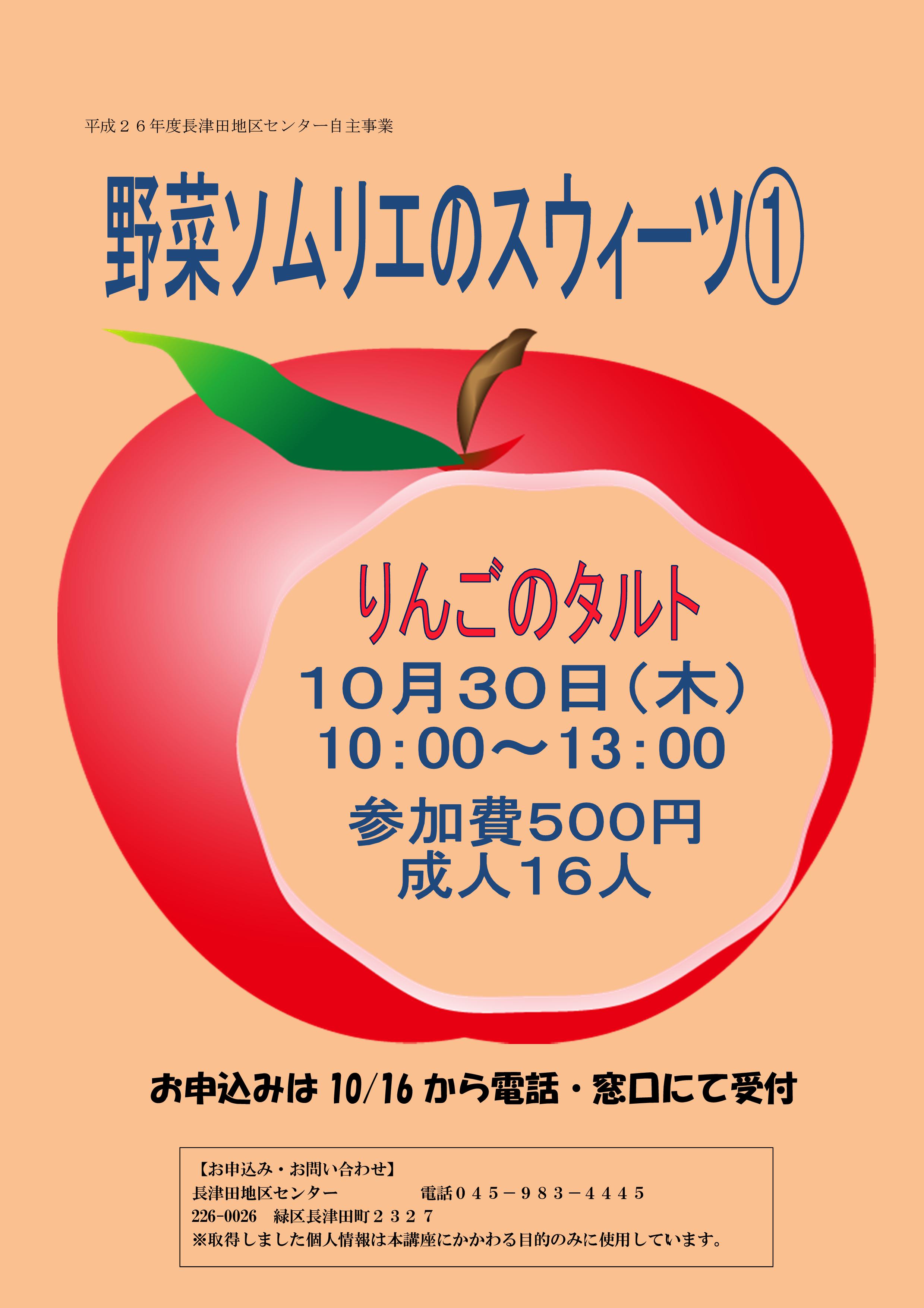野菜ソムリエのスウィーツ①では、「リンゴのタルトレット」を作ります。