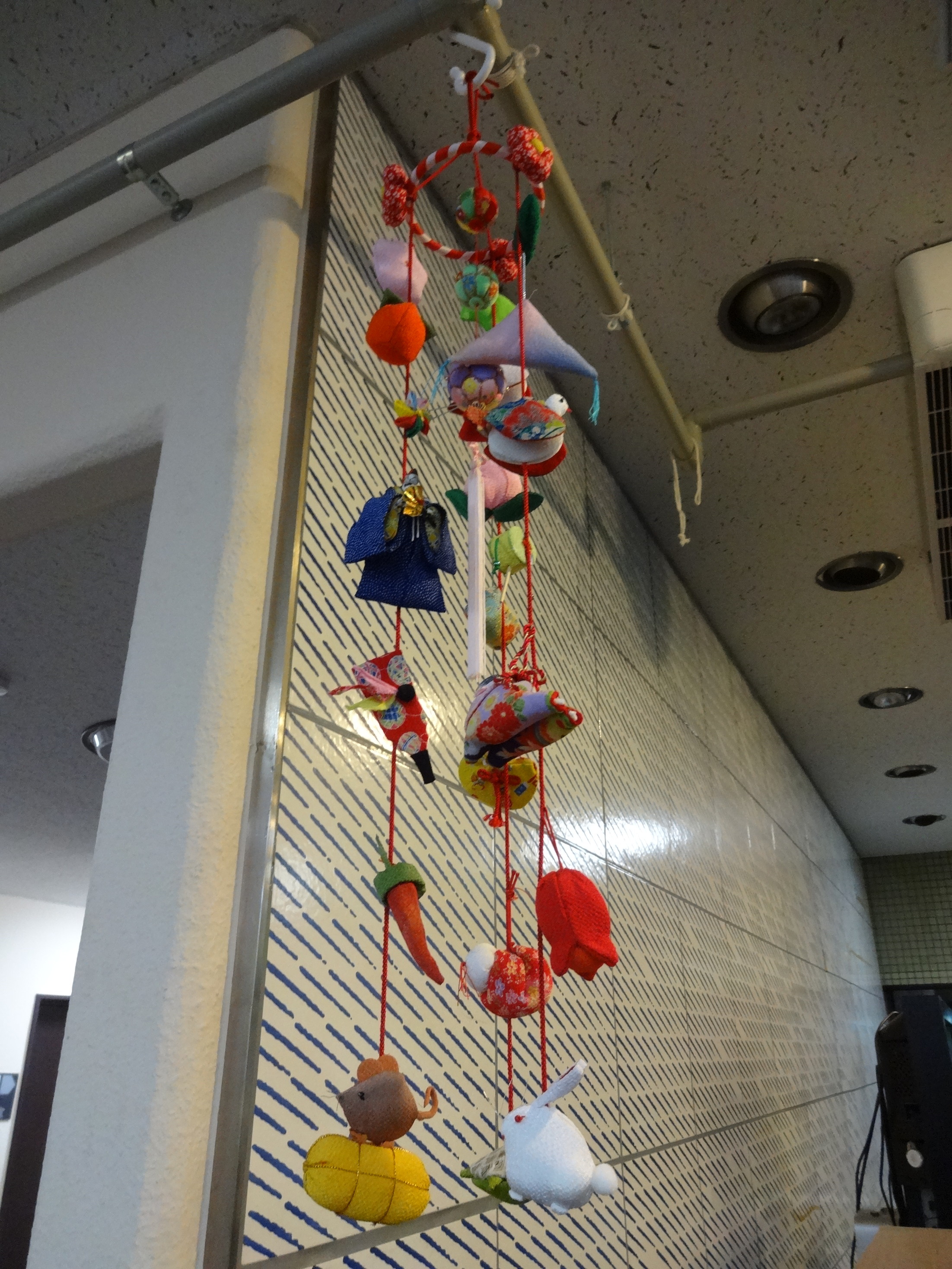 (下の写真は、講師の作品です。1本に7つの飾りがついていて3本つるしています。)