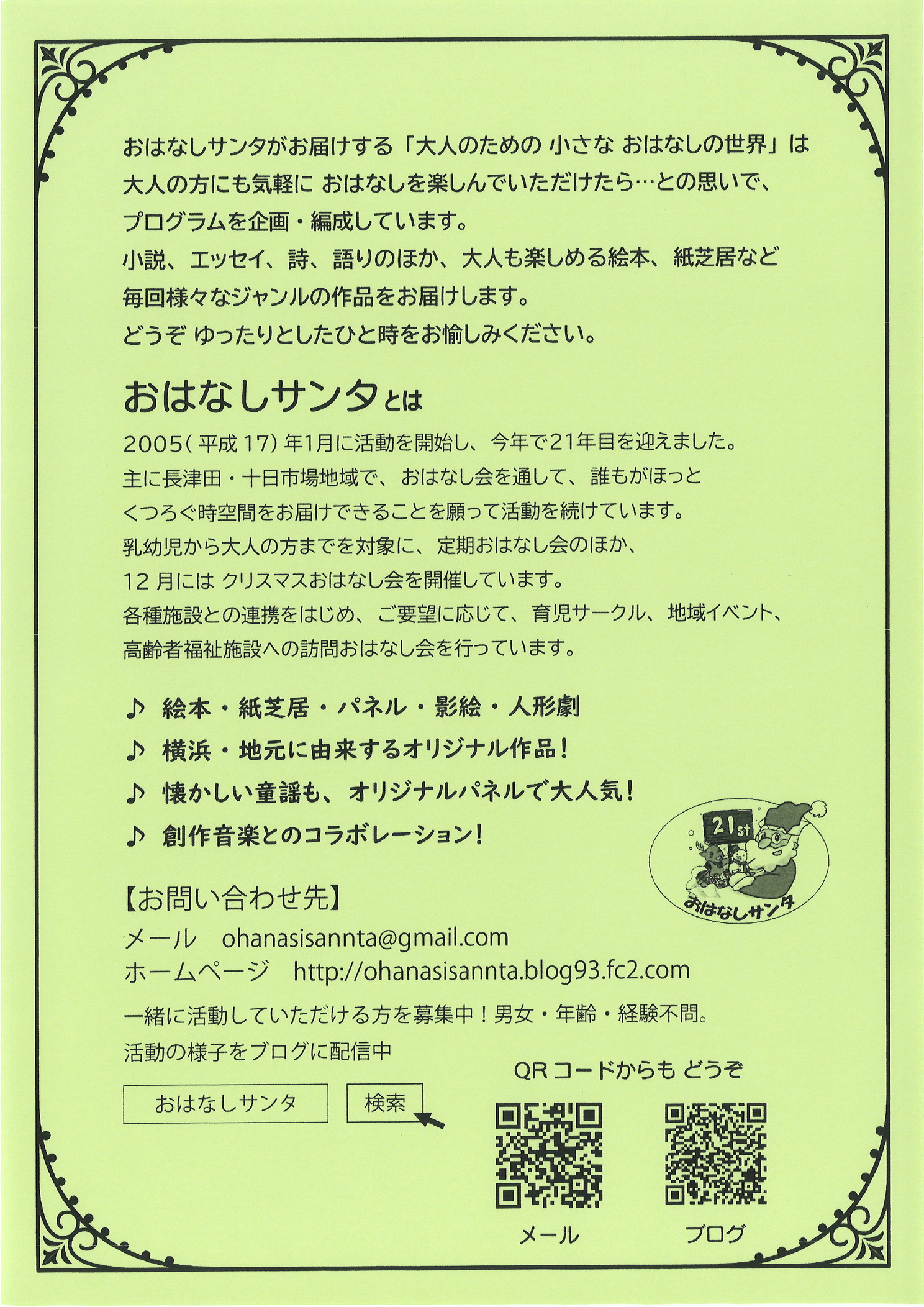 持ち物:はさみ・セロテープ・参加費400円