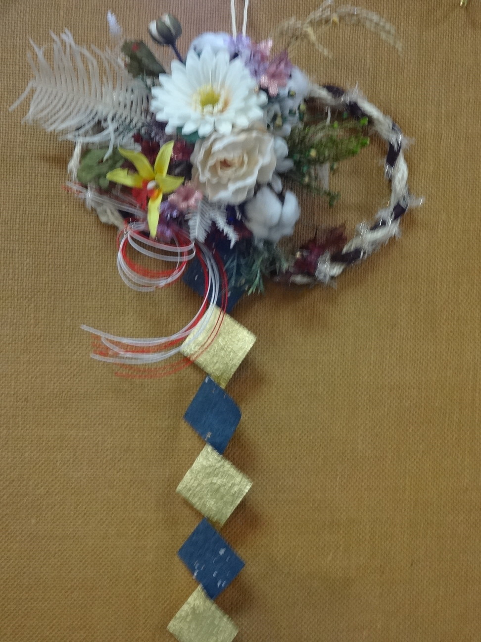 シルクフラワー中心で正月のしめ飾りをつくります。