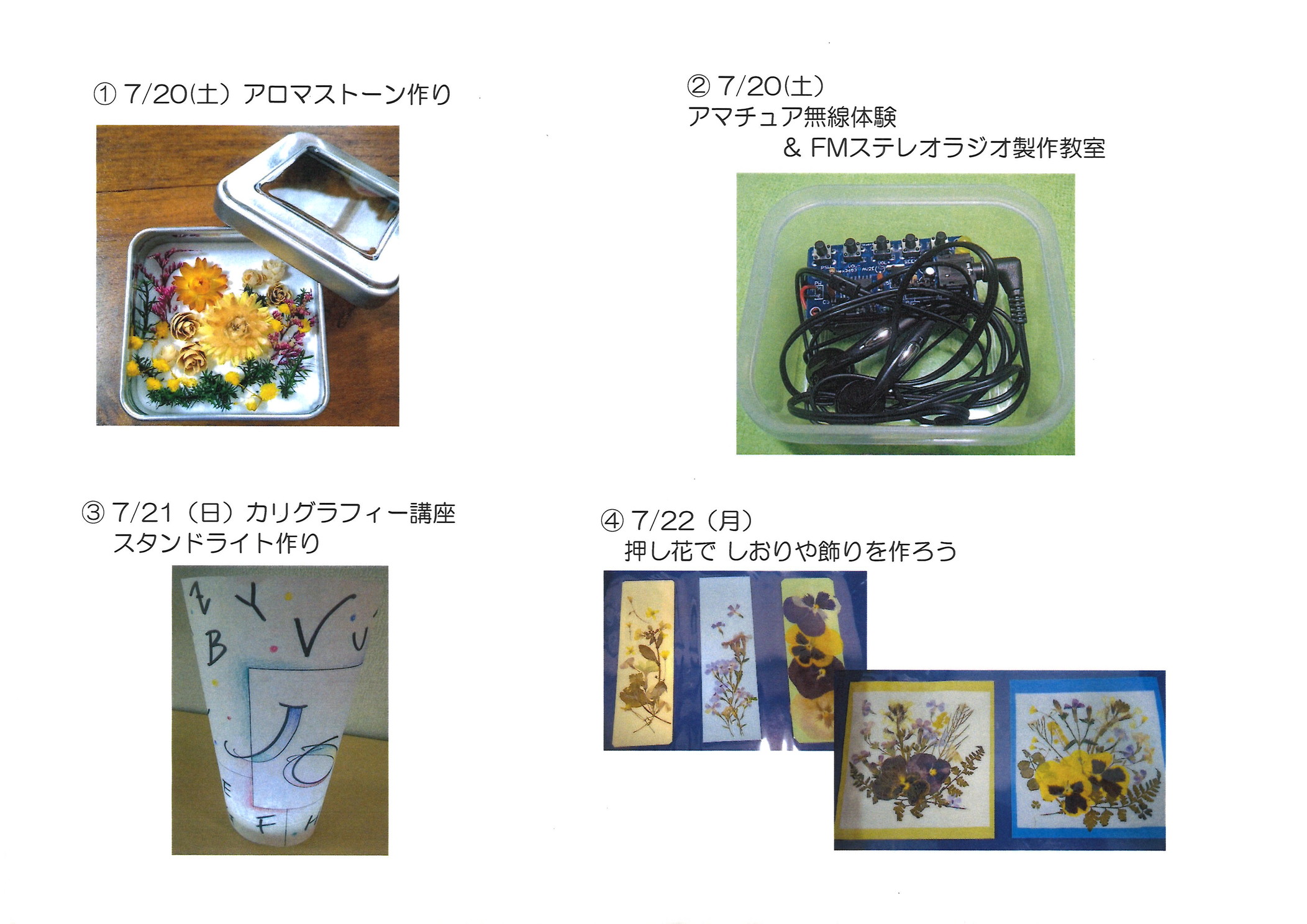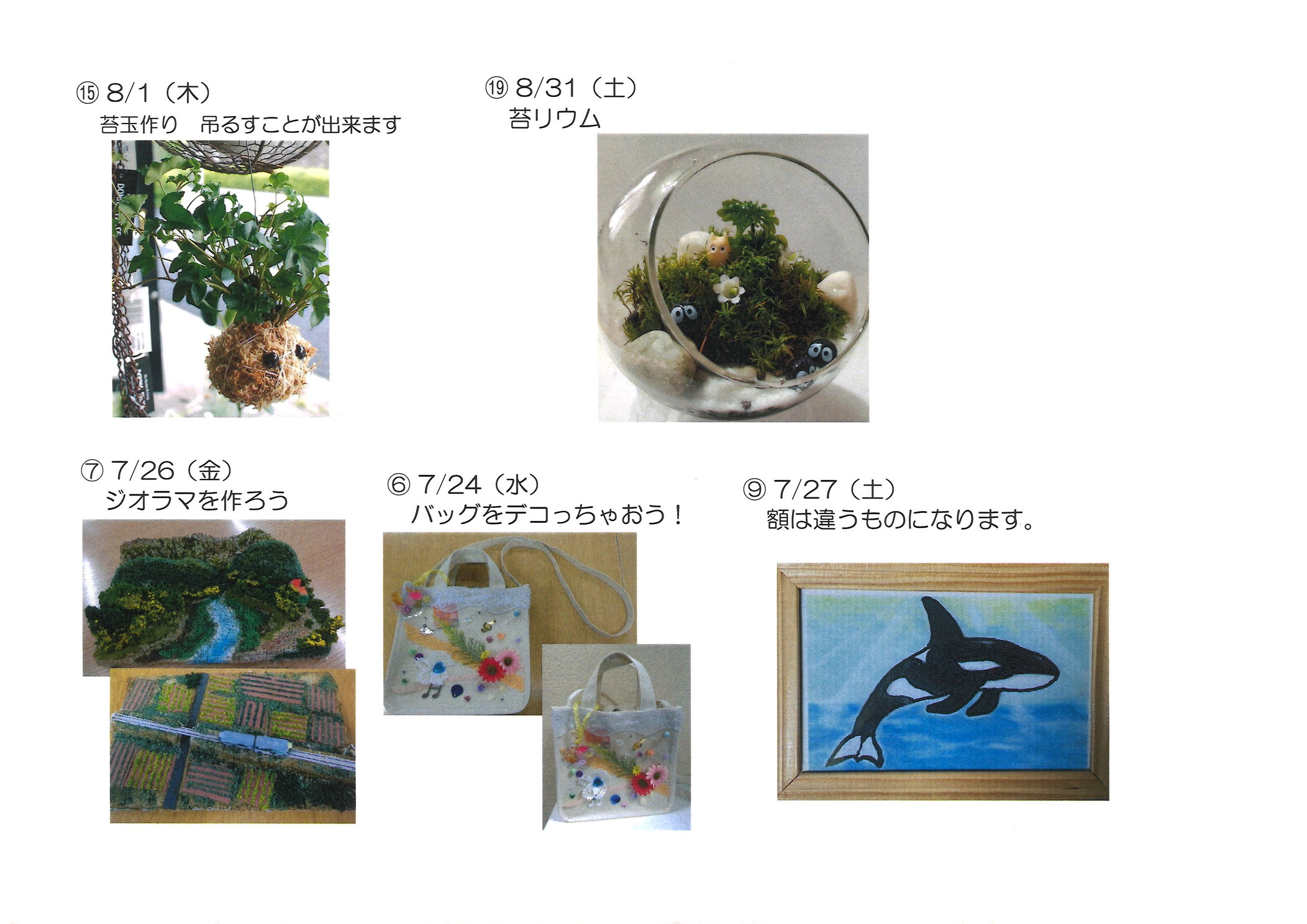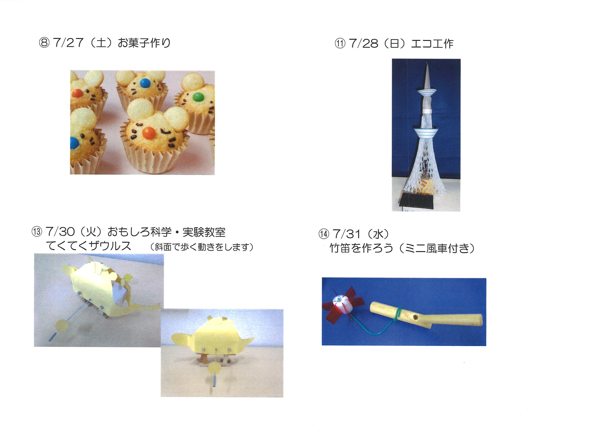 - 各1100円(工作材料費・保険代含む)