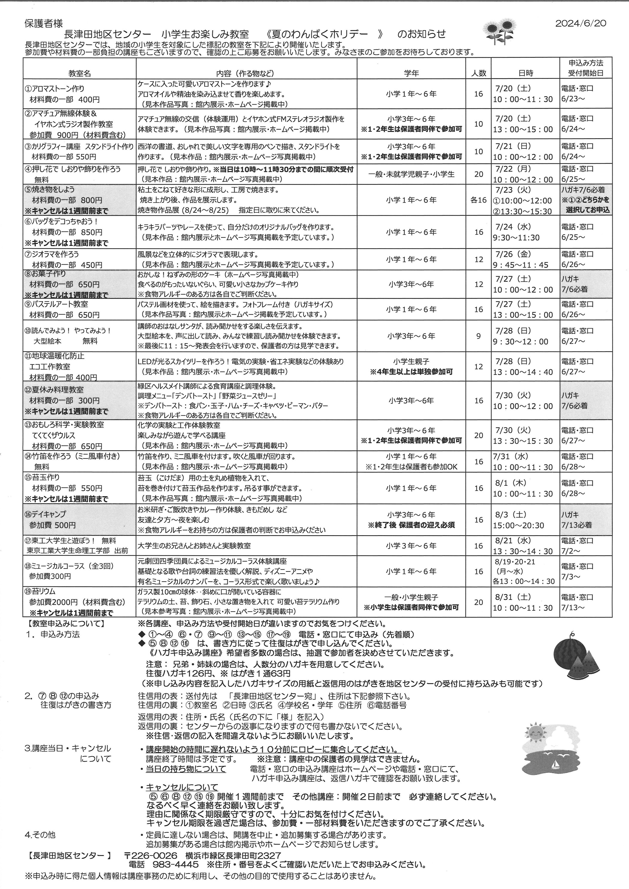 小学生 夏わんぱくホリデー 講座案内