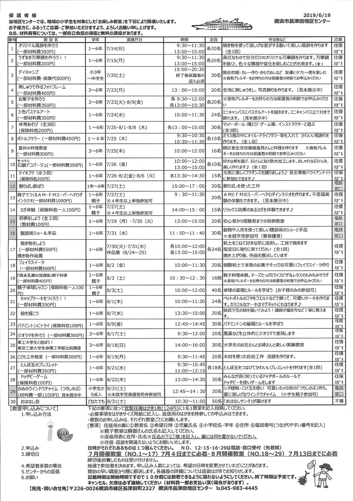 - 往復ハガキ(7/5までに必着)