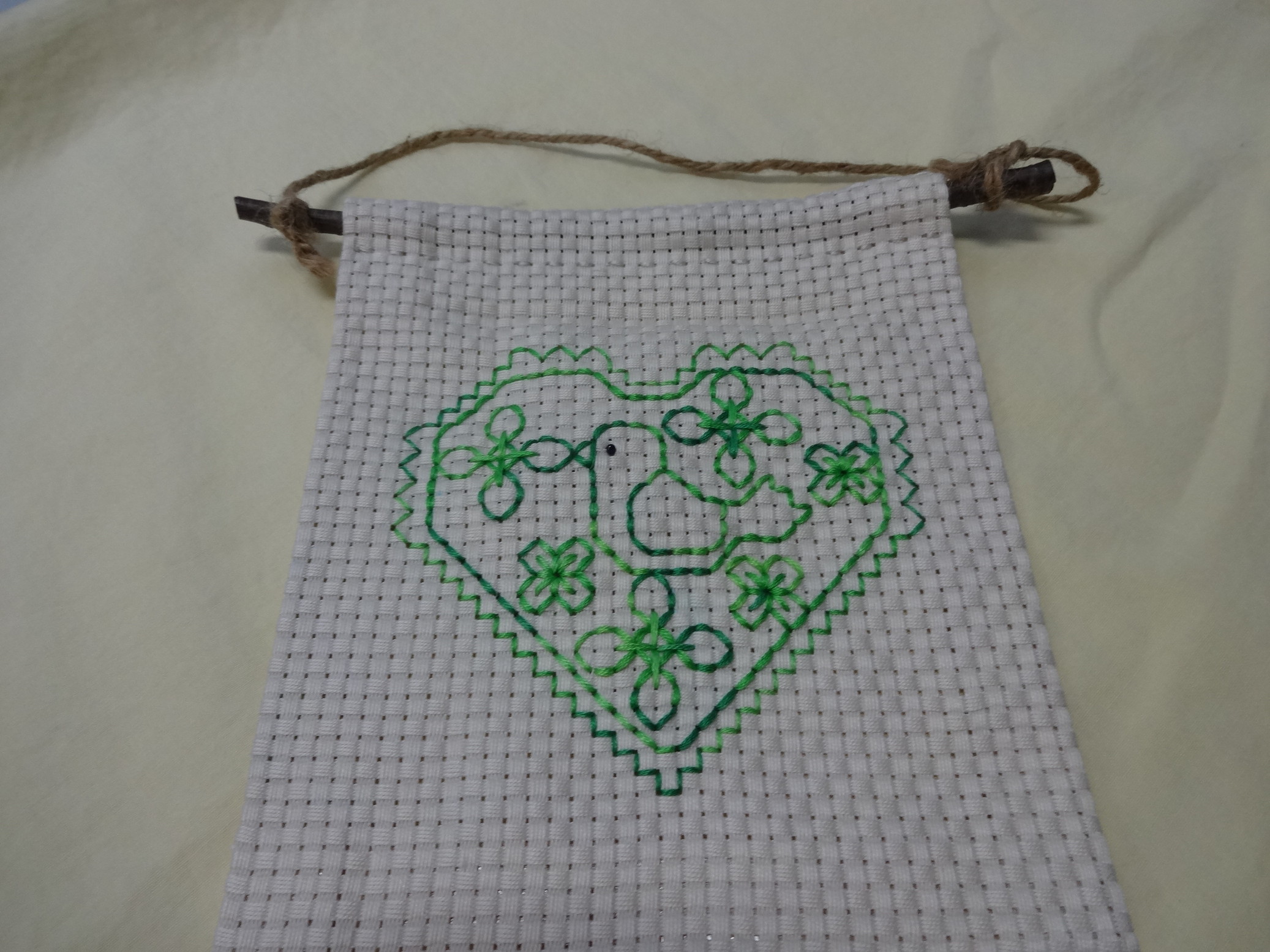 刺繍をしたことがなくても先生が丁寧に教えるので安心な毎年人気の教室です。本年度は、小鳥とハートを戸塚刺繍でデザインした素敵なミニタペストリーに挑戦してみよう!