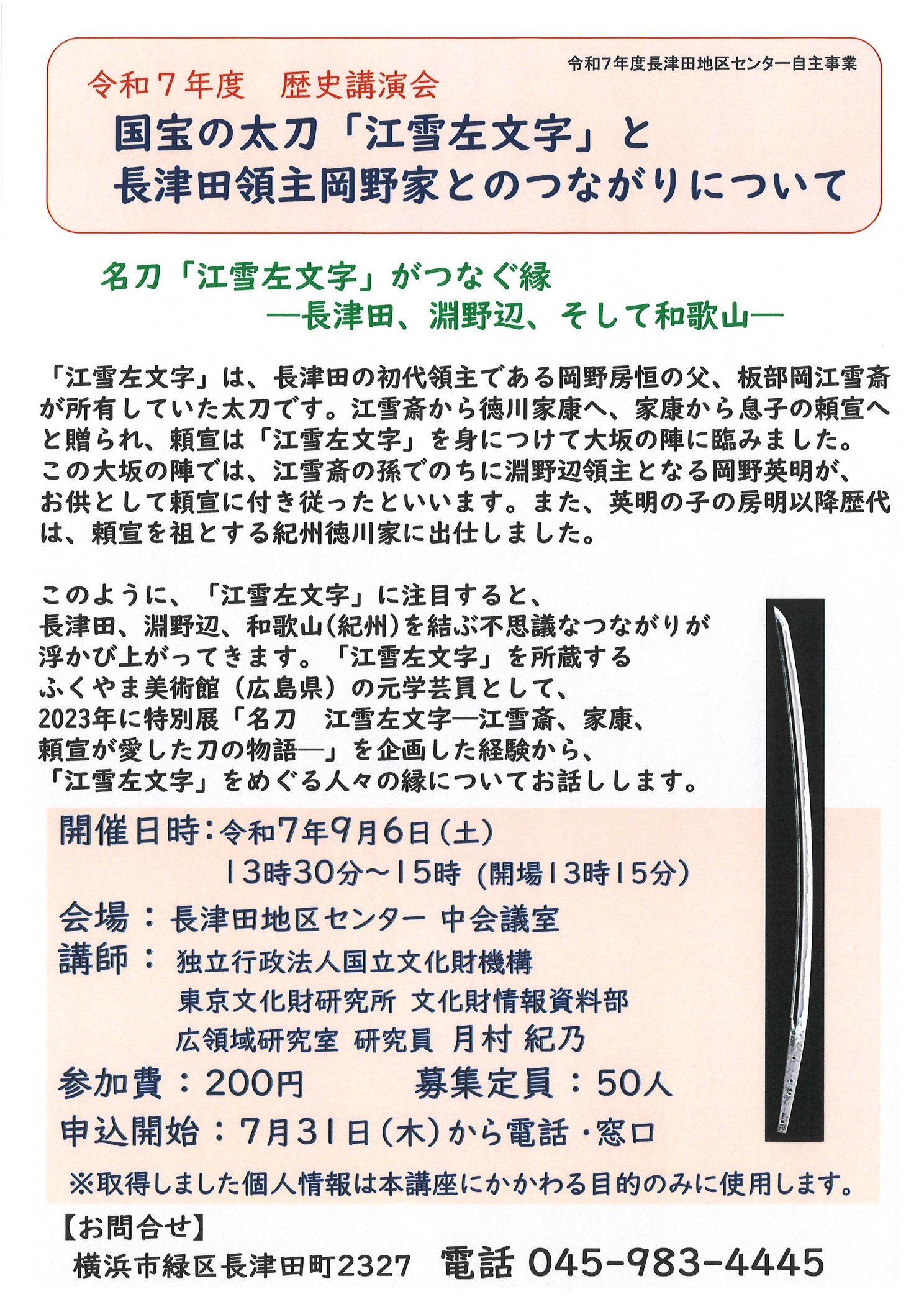 名刀「江雪左文字」がつなぐ縁―長津田、淵野辺、そして和歌山―