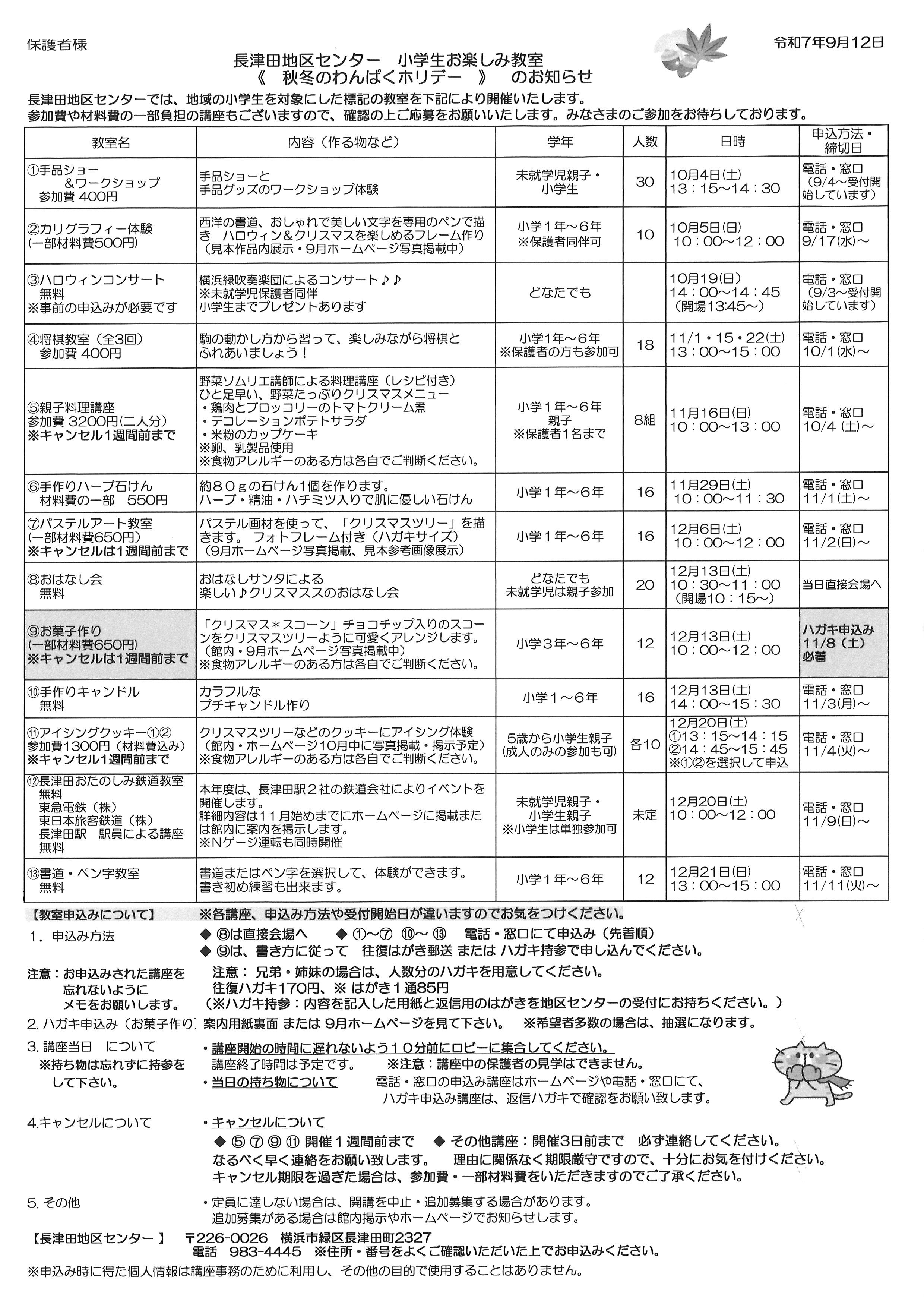 小学生 秋冬わんぱくホリデー 講座案内