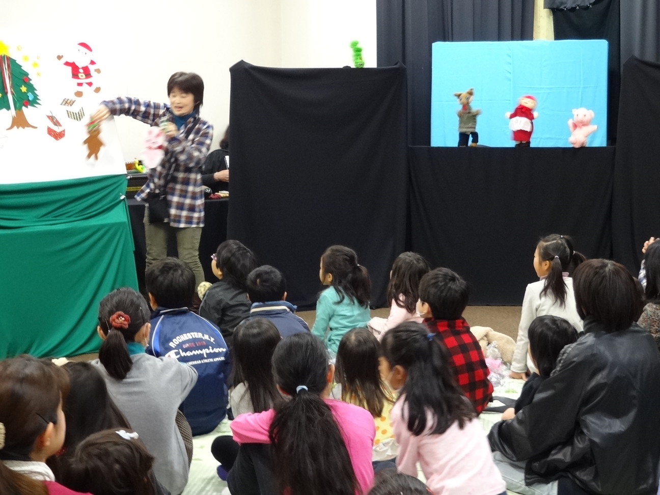 クリスマスのプレゼントといつもより大がかりなおはなし会に子どもたちは、「ワクワク」です。