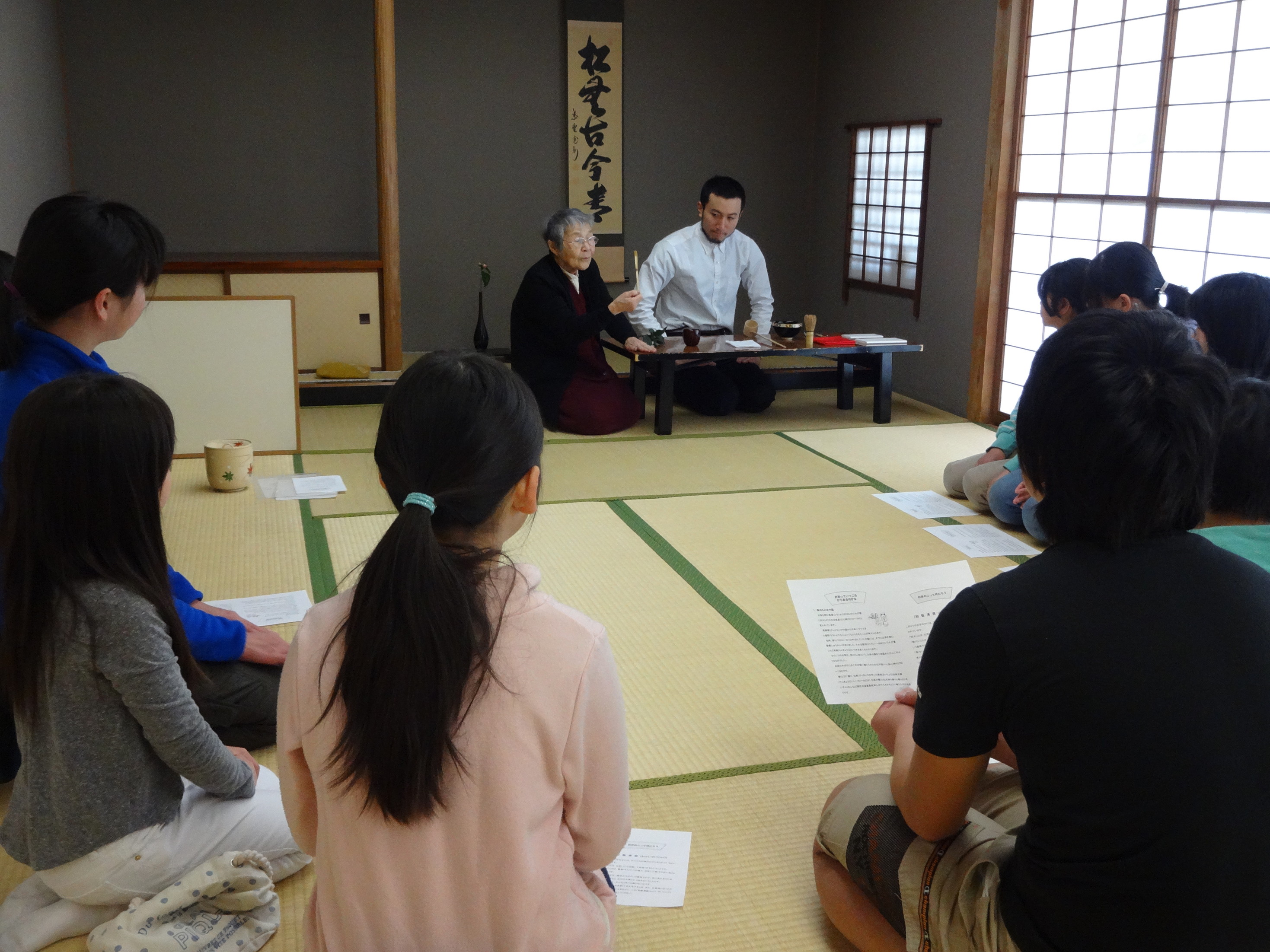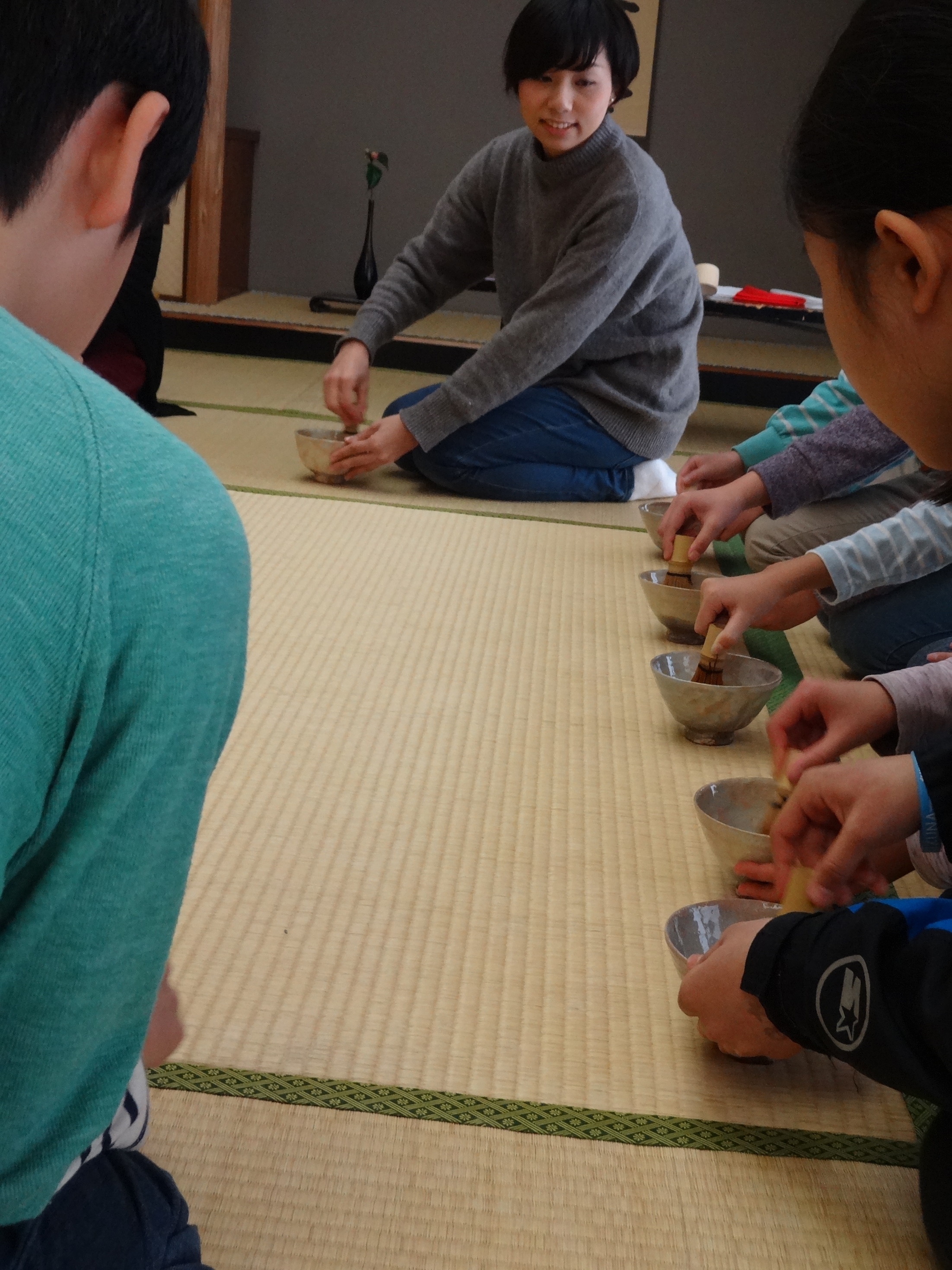 冬のわんぱくホリデー、最後の教室「茶道一日体験」を行いました。 残念ながら、インフルエンザが流行しているようで、お休みのお子さんがいました。 本日は、小野先生をはじめ、お兄さん先生とお姉さん先生から茶道の基本から正しく習いました。