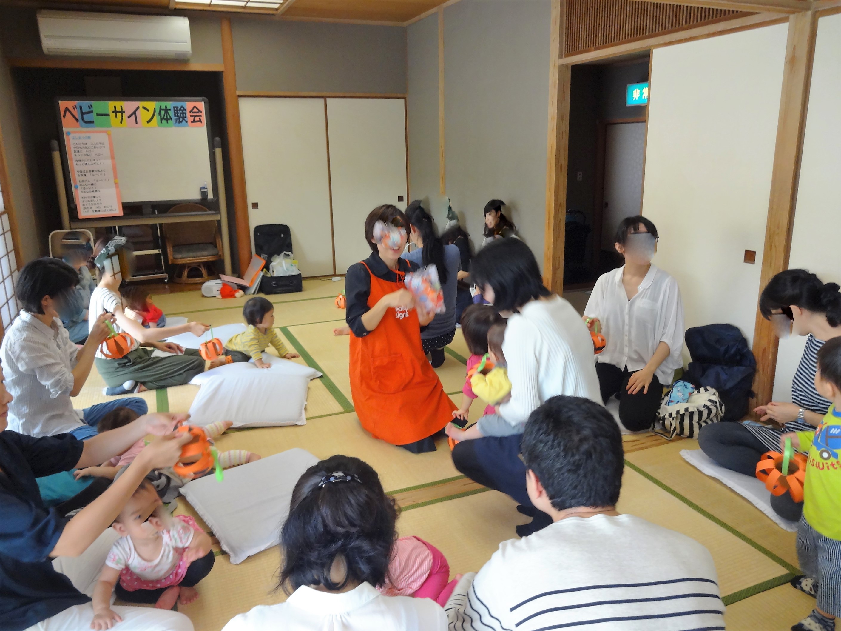 赤ちゃんからママへ、ママから赤ちゃんへ、サインや手話やジェスチャーで気持ちを伝えられれば お互いに気持ちがつながりストレスを抱えることもありませんね。 たくさんの言葉を覚えてママと会話できます。 ハロウィンも近いので、お父さんとお母さんと一緒にかぼちゃのバッグを手作りしました。 今日はみんなで「かぼちゃ」というサインを覚えました。