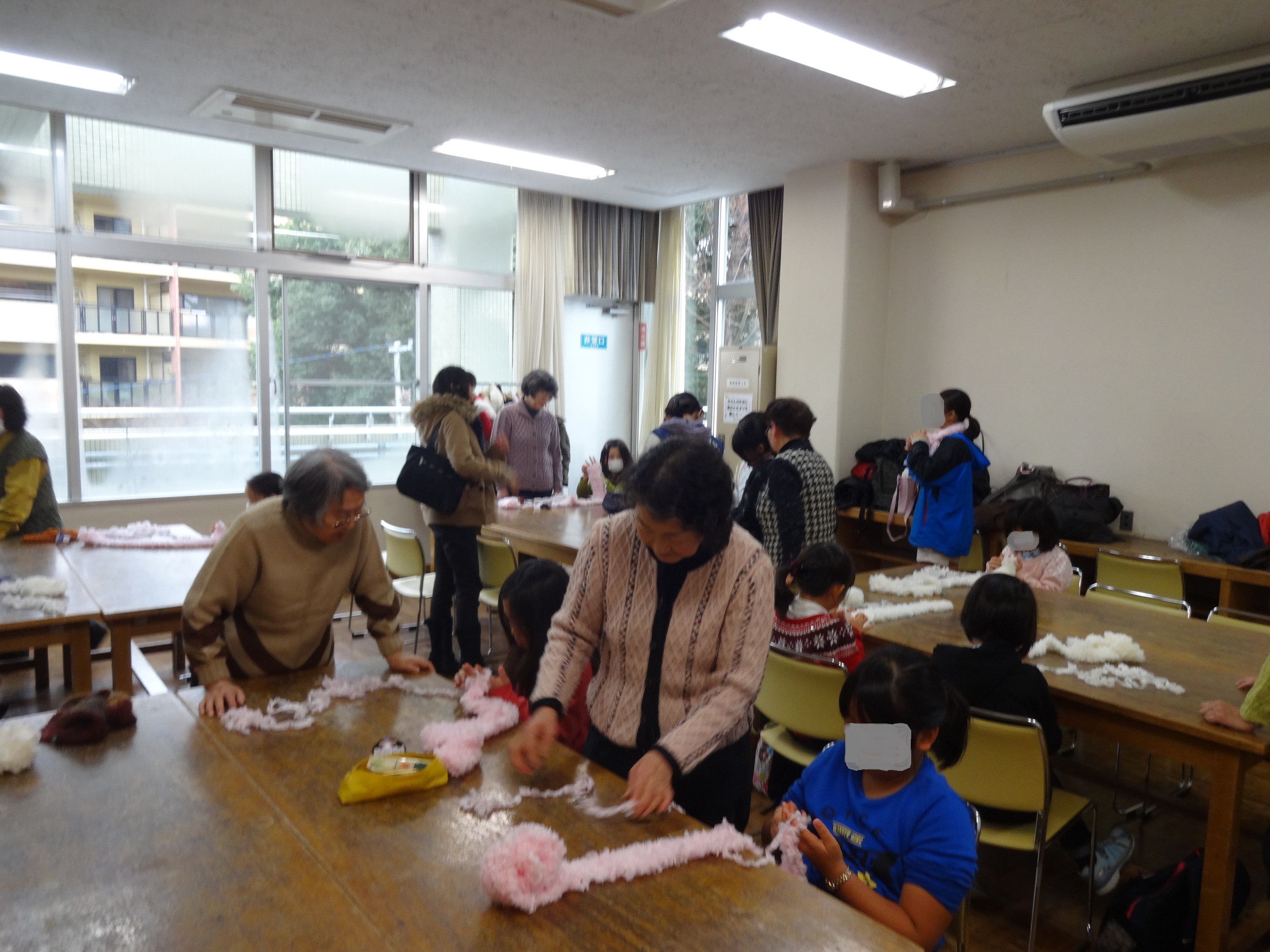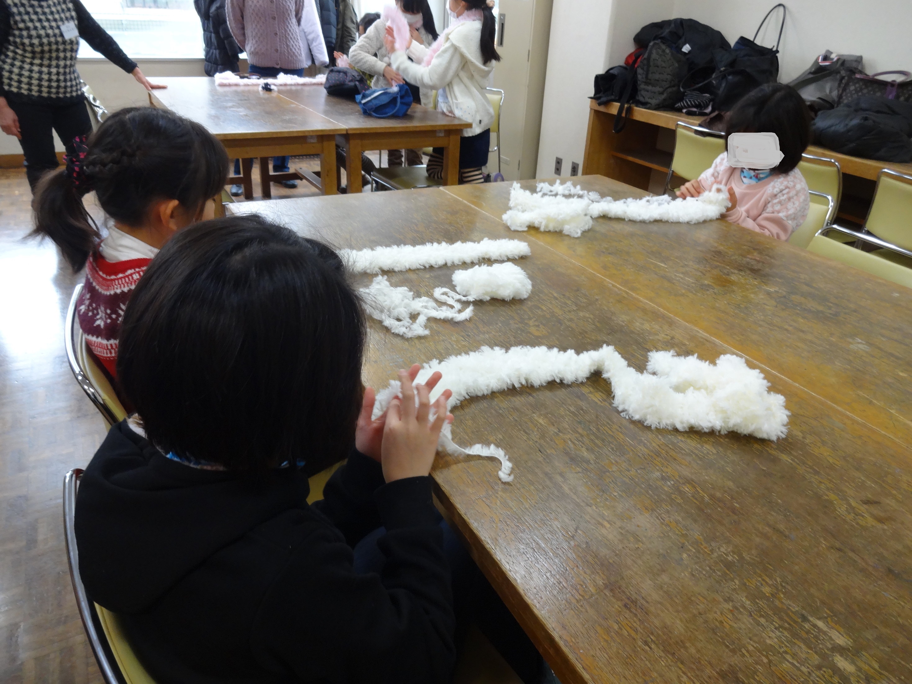先生のおはなしを聞いてちいさな手で一生懸命編んでいましたが、