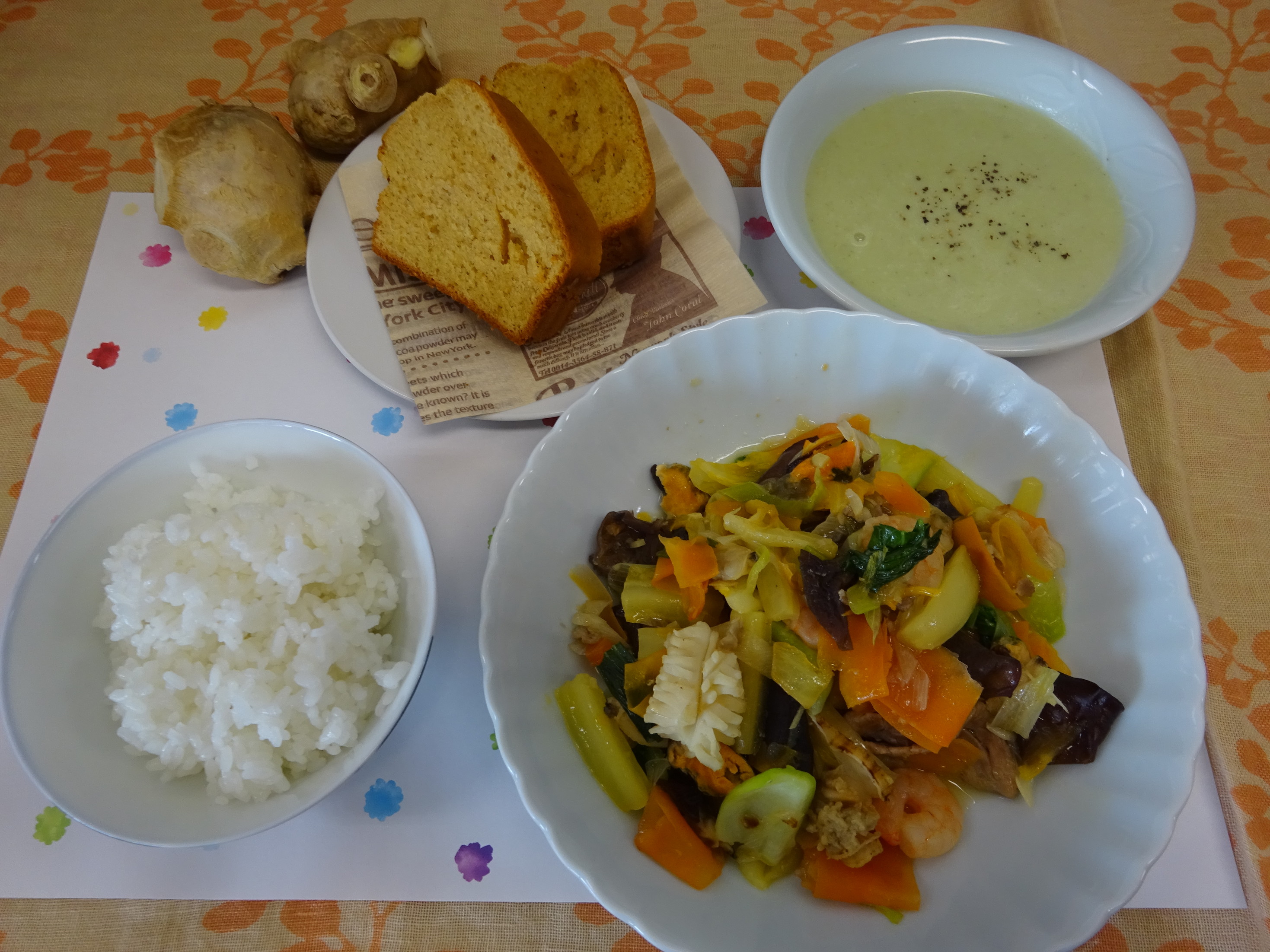 野菜ソムリエ講師による 冬に体が温まるレシピの講座を開催しました。 野菜の下ごしらえ・料理のコツなどが習えて 美味しい料理が出来上がり、参加者のみなさまに大変好評でした。 メニュー ・白菜とろとろ八宝菜 ・余り野菜とお米の生姜ポタージュ ・ジンジャーパウンドケーキ