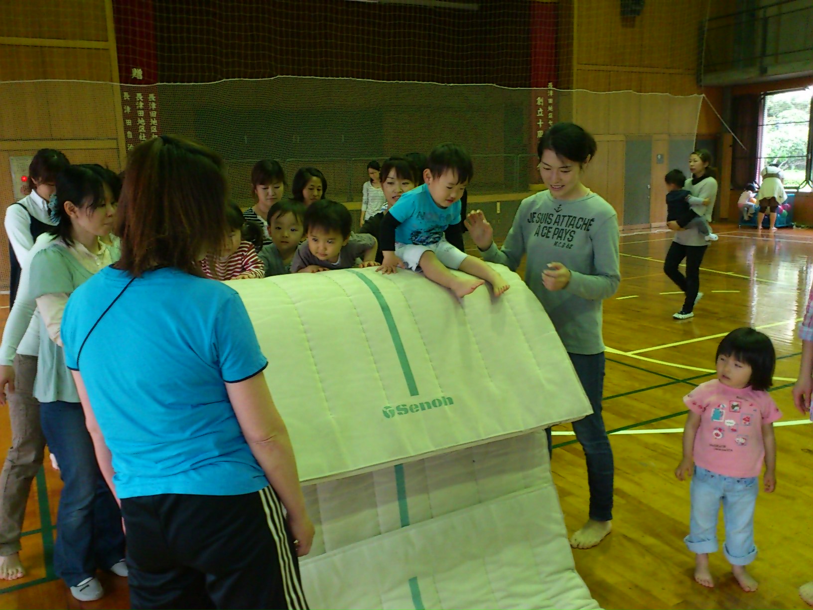 たくさんのお友達とママたちの参加で元気に春の親子体操が始まりました。