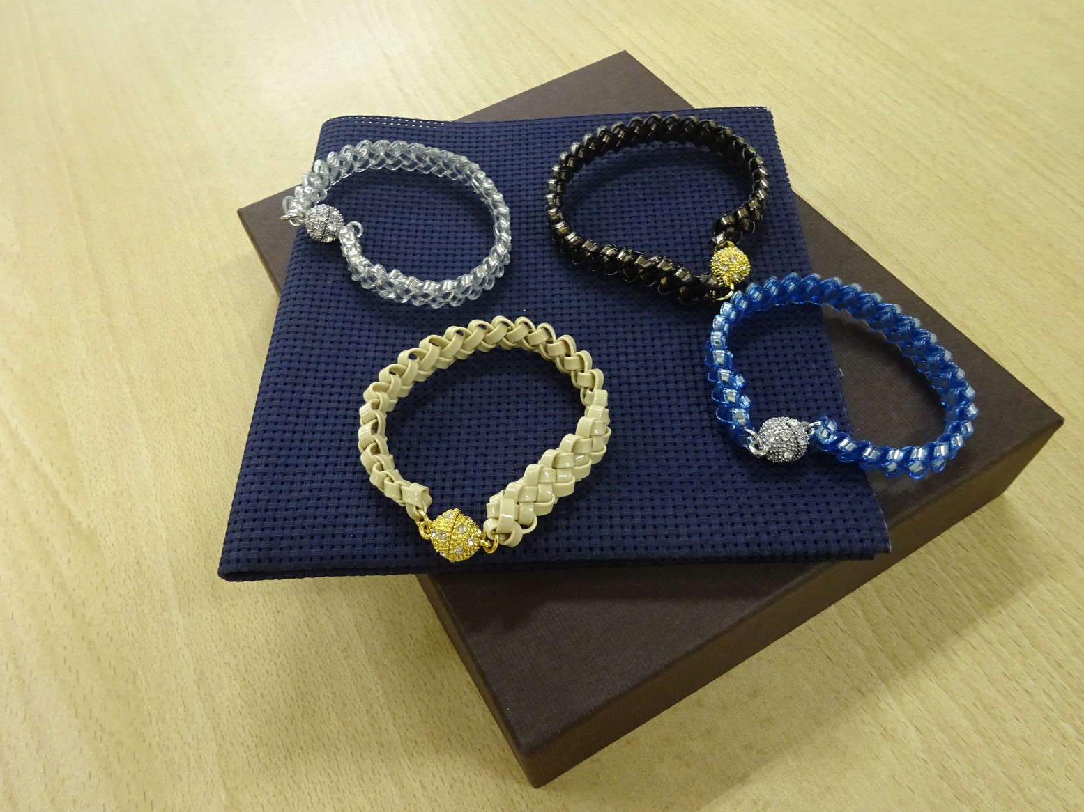 光沢のあるラメルヘンテープで作る講座 ハワイの講師が始めたもので、アクセサリーのほかに バッグなども編んで作れます。 今回は初心者でも作れるブレスレット作り 講師が丁寧に教えてくださるので 参加者のみなさん 好みの色のブレスレットが 出来上がって とても喜ばれていました。