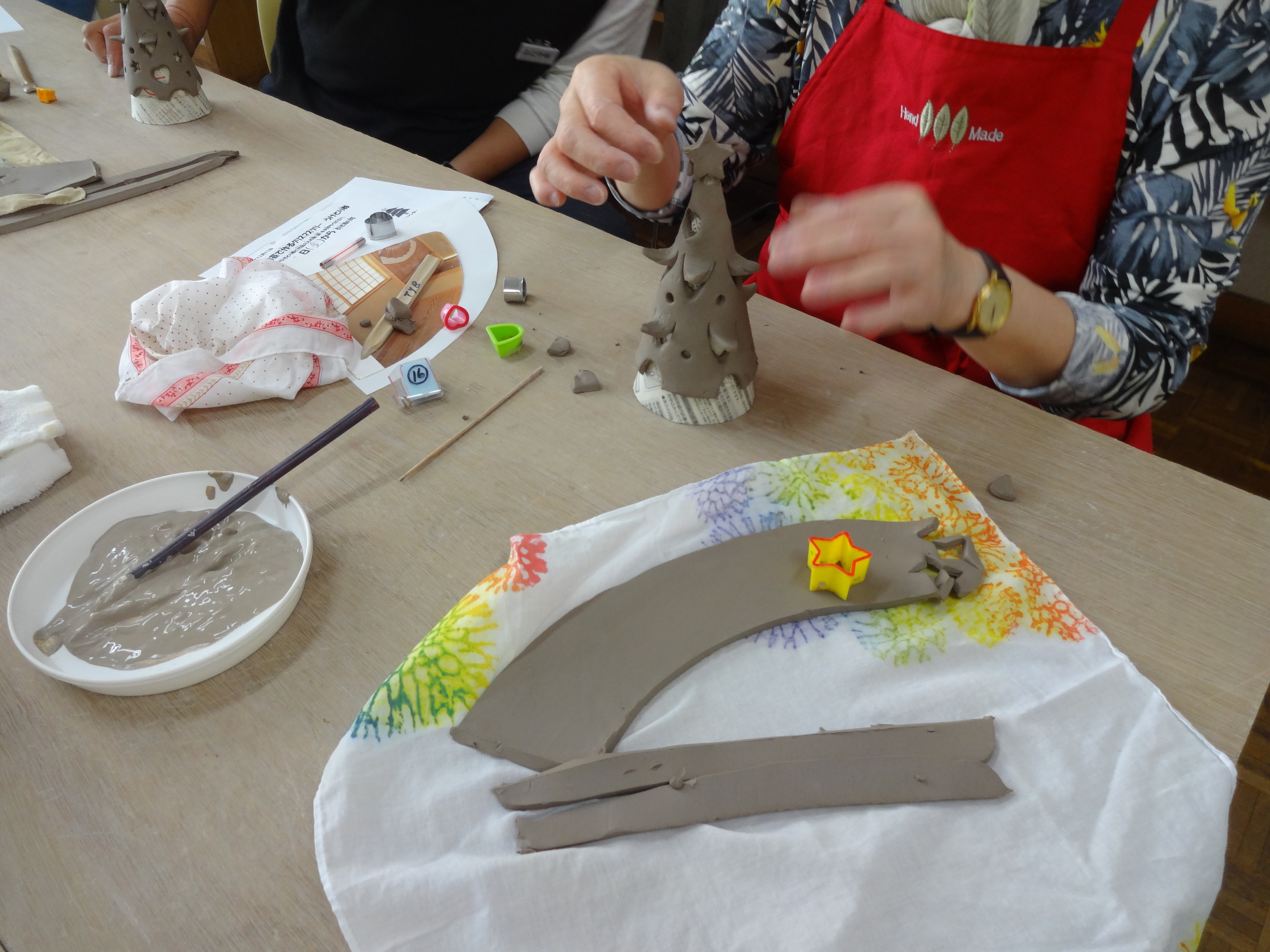 陶芸体験でクリスマスツリー作り