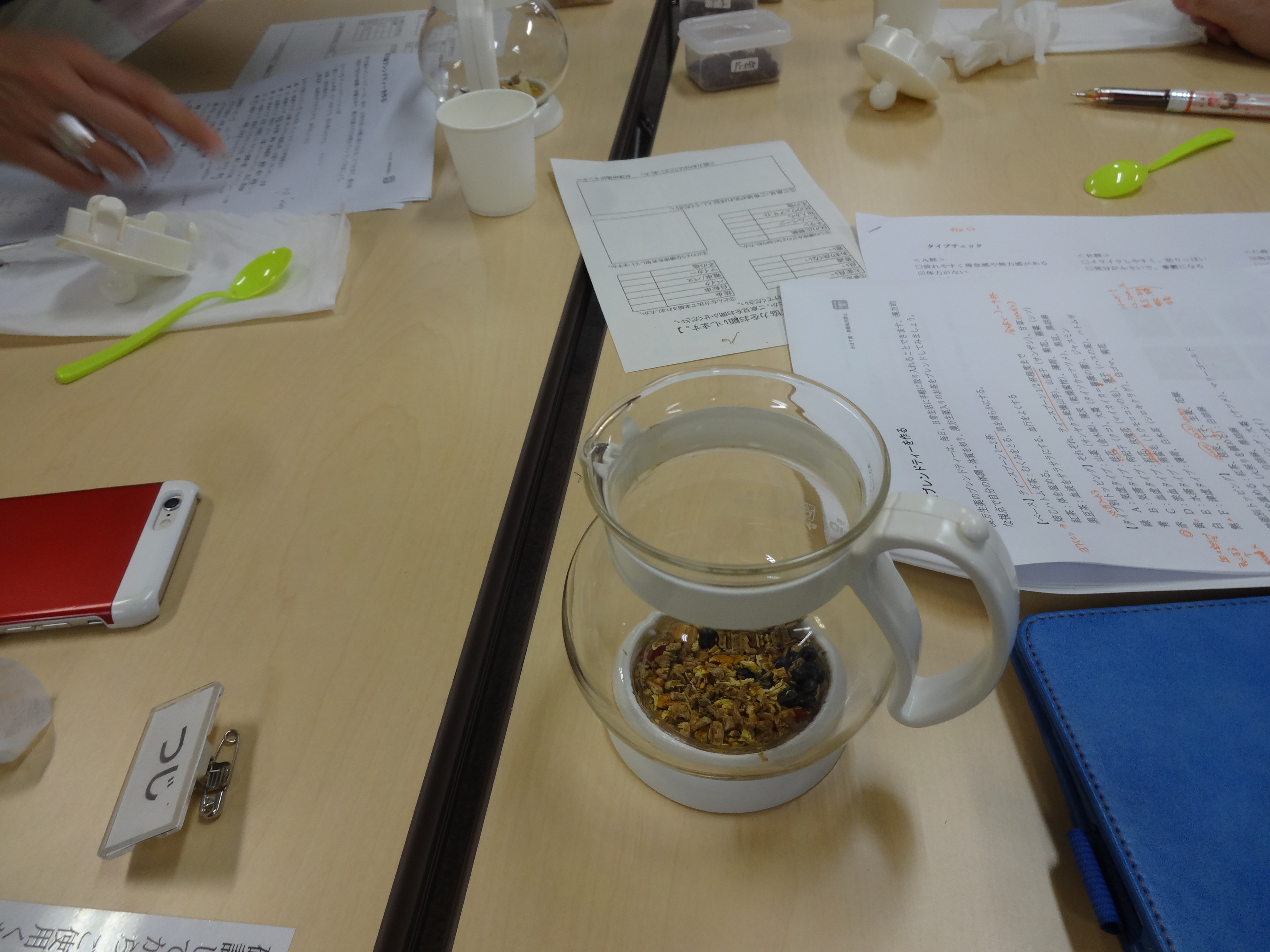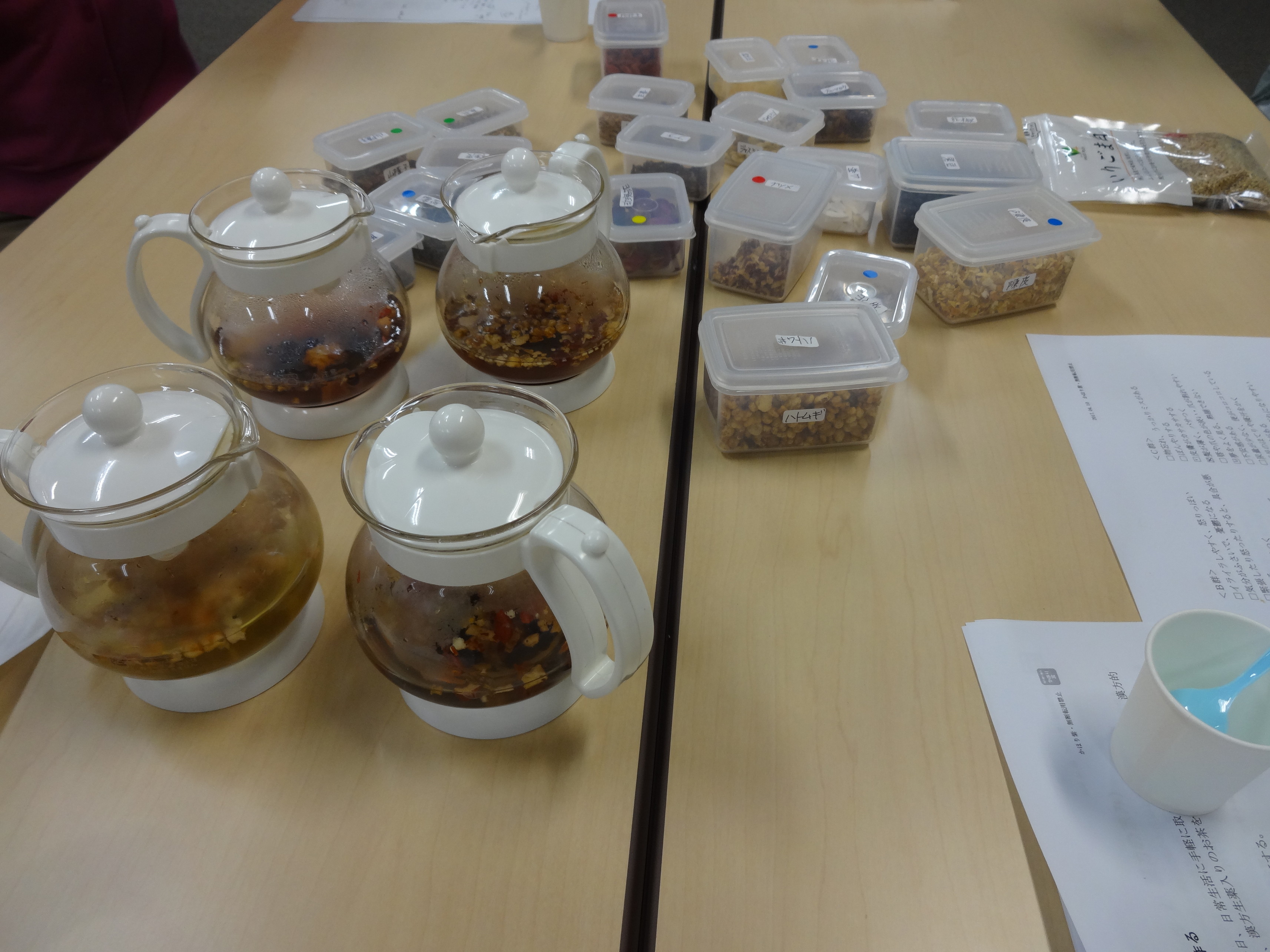 8月19日 お線香や練香にする香原料粉末を細かい番数のふるいに何回もかけ、指紋にも入る位まで極細粉末にしたものを使用して、ご自分だけの塗香(ずこう)を作りました。 9月16日 チェックシートで自分のカラダを知り、ご自分に合わせた漢方生薬たっぷりのオーダーメイドのお茶をお一人ずつ楽しみました。