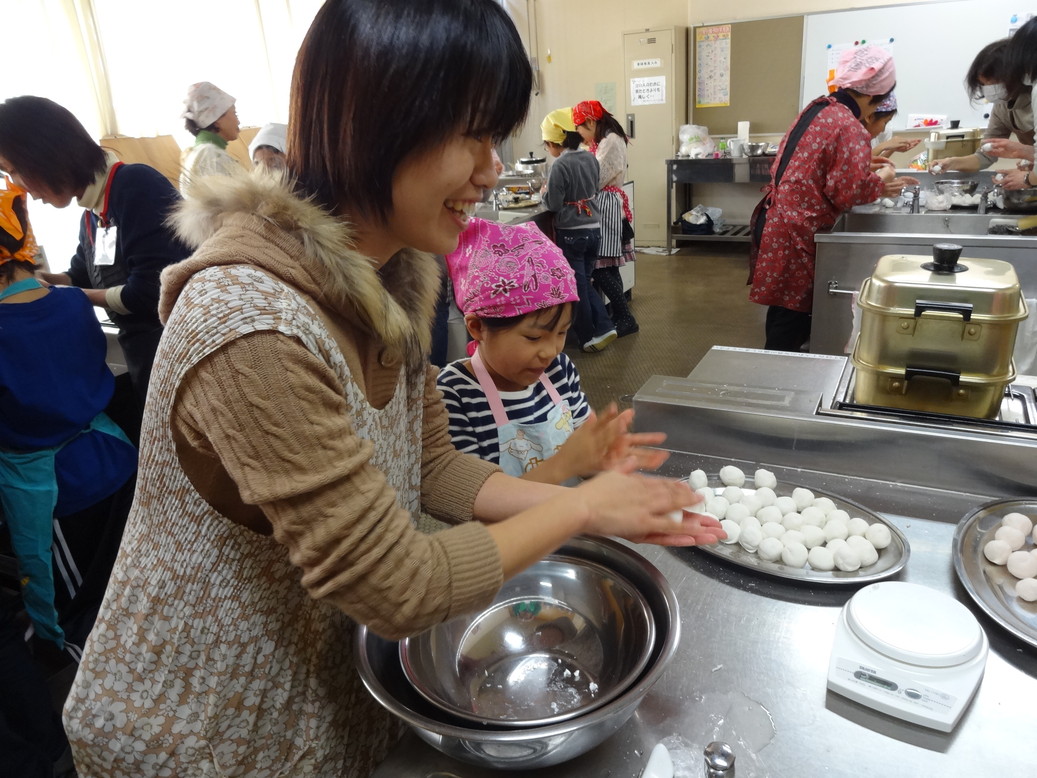 丸めていきます。きちんと米粉20グラムを量ってみんなで一生懸命