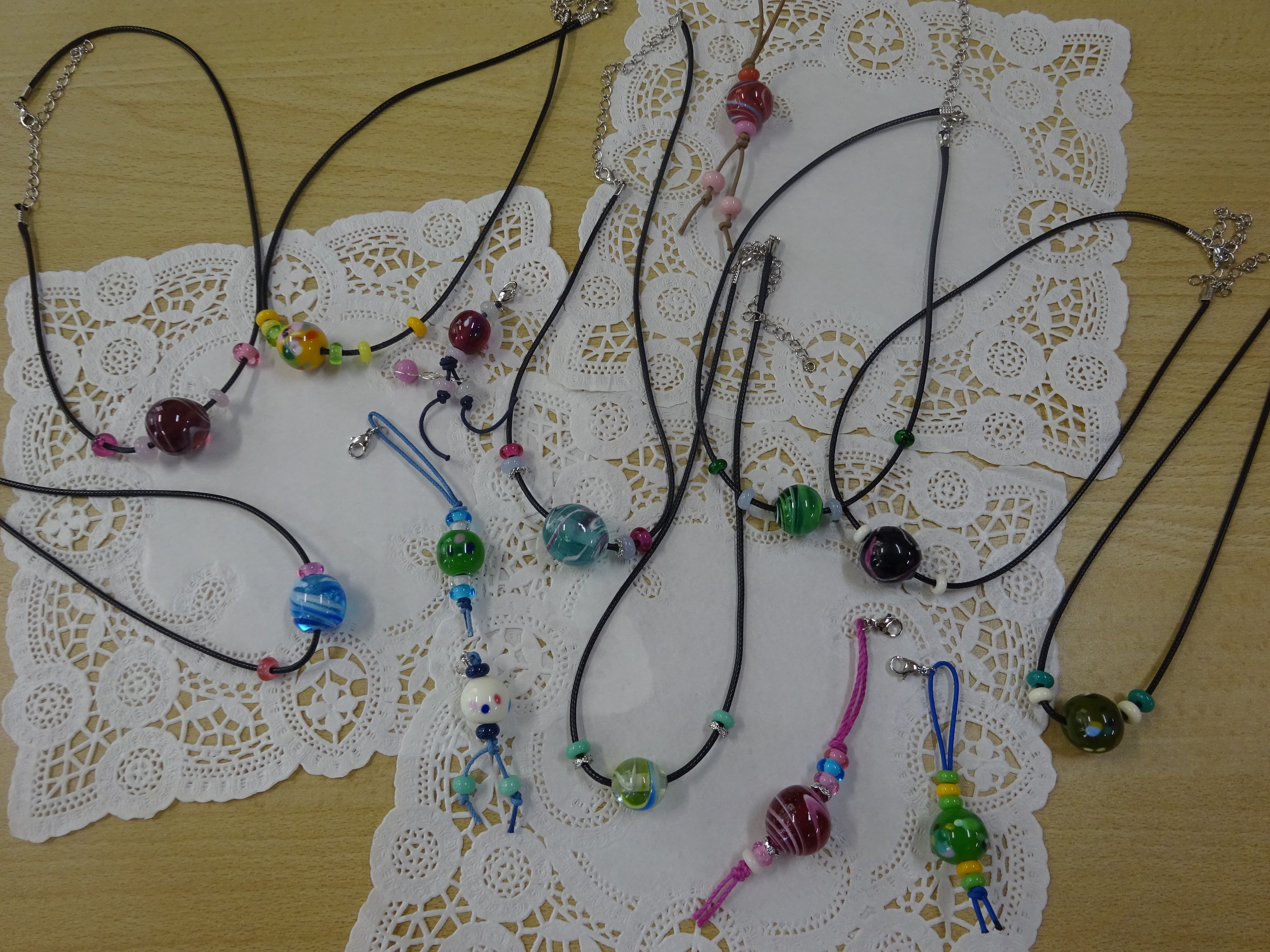 色とりどりのガラスの棒を溶かして 「とんぼ玉作り」 溶けたガラスの面白さを体験できる講座を 開催しました。 焼いたとんぼ玉で ネックレス1つ、ストラップまたはチャームを1つ 仕立てました。 参加者のみなさまに大変好評でした。