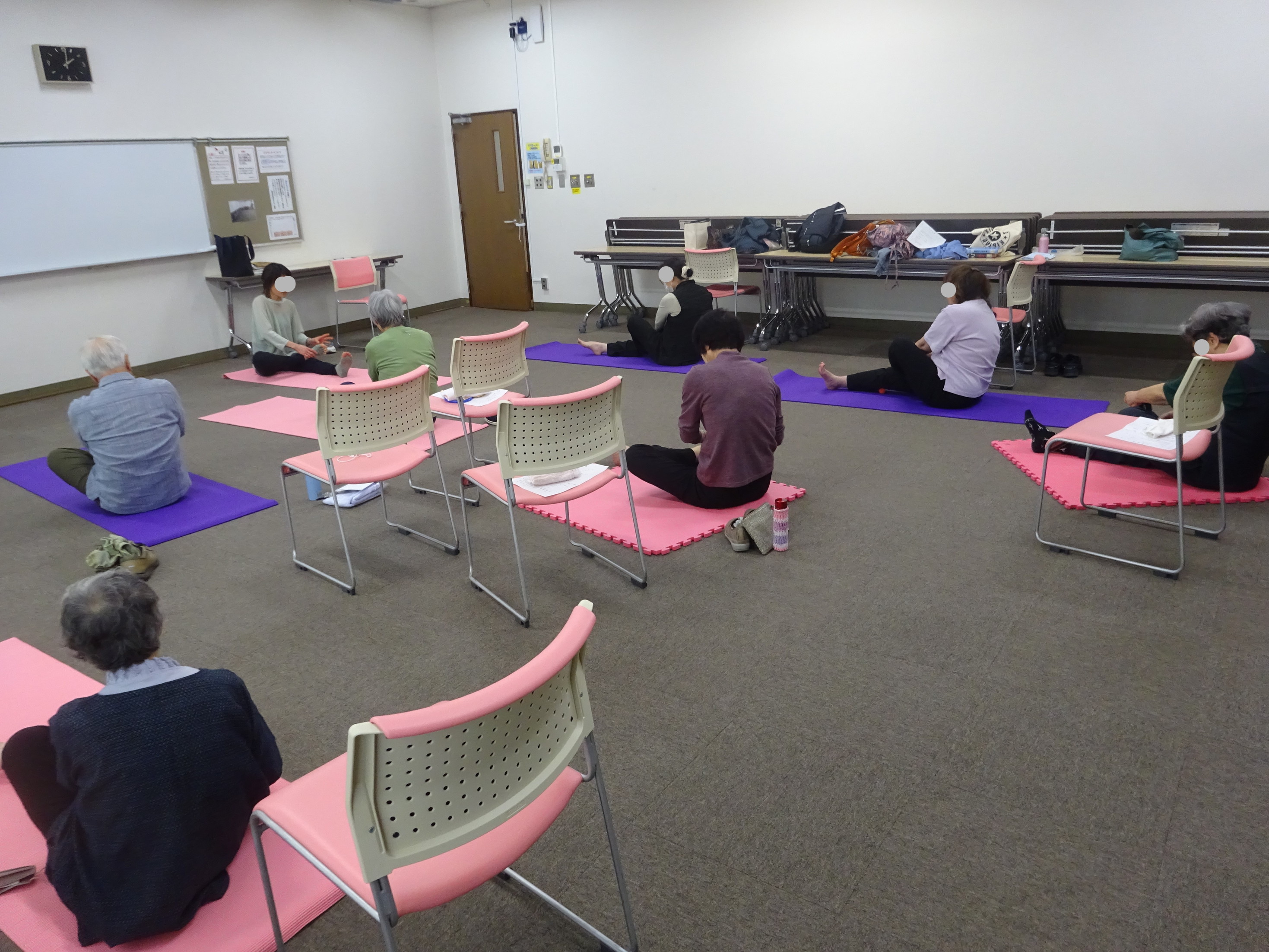 椅子と床で体験できるヨガ講座を 開催しました。 足指ストレッチや姿勢を整えるストレッチ 顔ヨガやセルフマッサージ、 安眠・自律神経を整える呼吸方法など 椅子と床のどちらでもできる、緩やかな体験ができて 参加者のみなさまに、とても好評でした。
