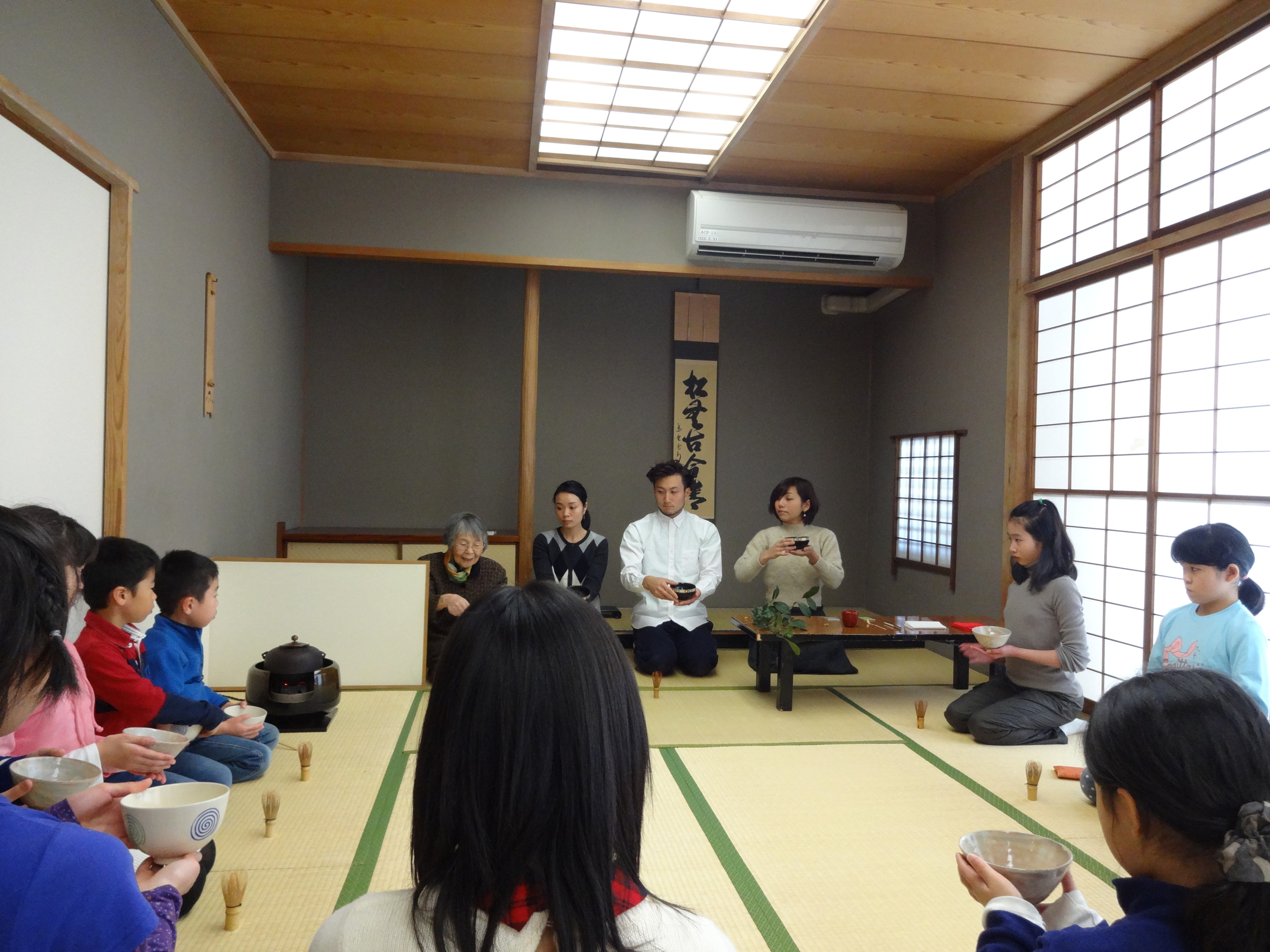 お作法やお茶の花を見せていただき、辞儀の仕方、お茶のたて方、いただき方などを丁寧に教えていただきました。
