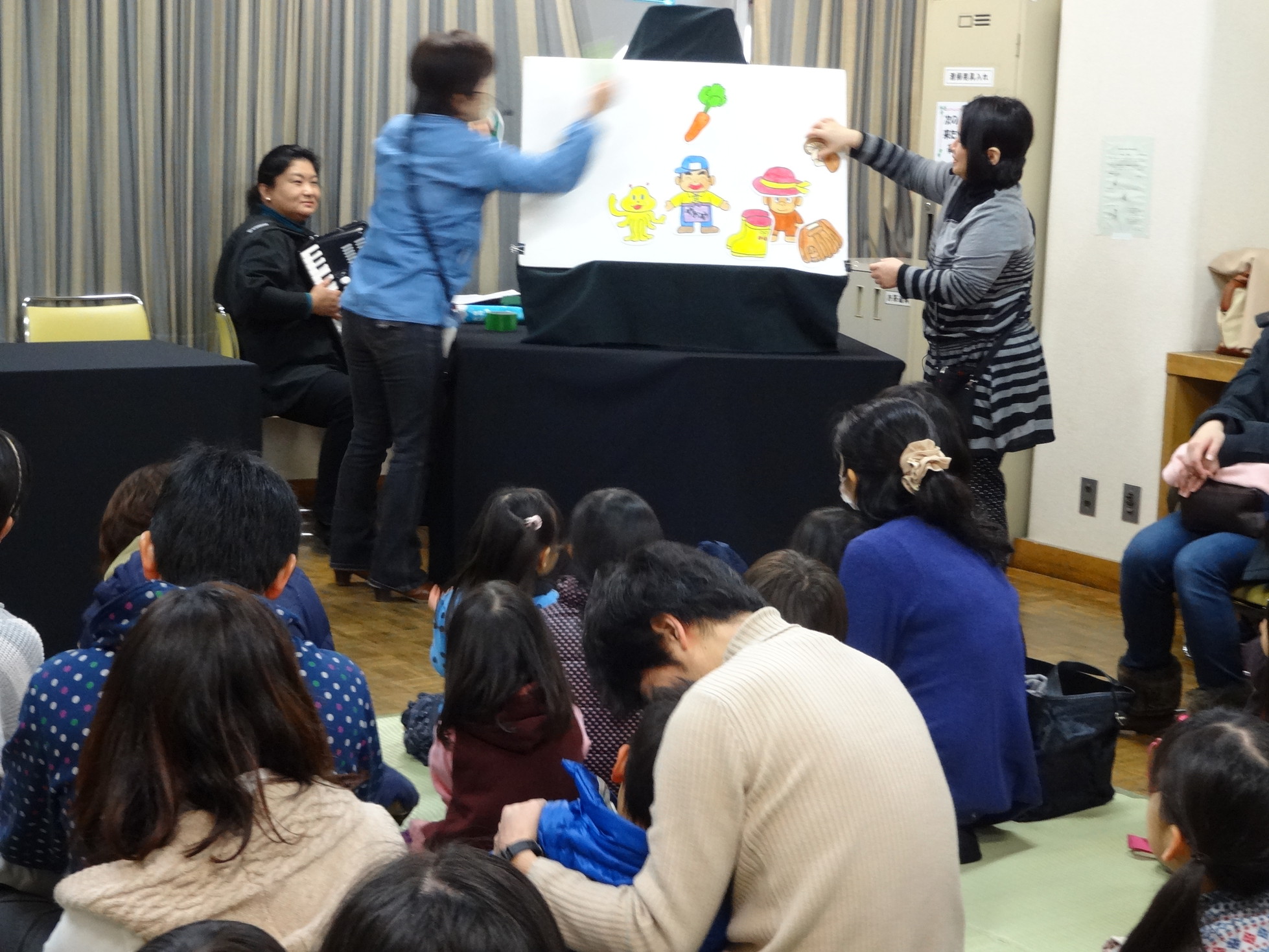 今日もたくさんの親子連れの方々にご参加いただきありがとうございました。 お楽しみいただけましたか。 歌あり、お芝居あり、、絵本、パネルシアター、紙芝居や手遊びと毎回盛だくさんです。 次回のおはなし会は5月10日㈯です。 お楽しみに!! 一緒に活動してくださる方も募集中ですよ。 ご興味のある方はぜひどうぞ。