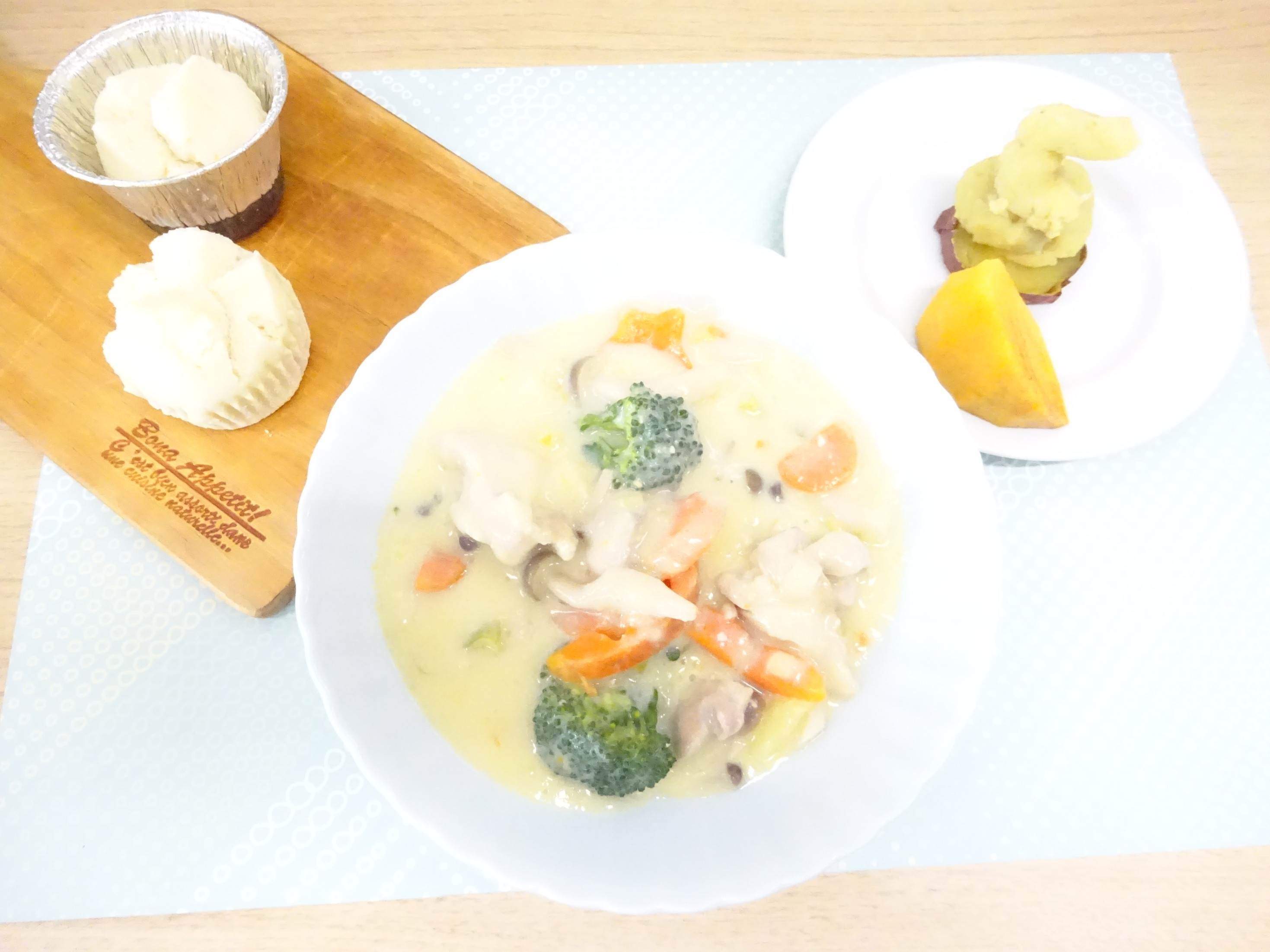 野菜ソムリエ講師による 親子で一緒に料理体験講座を開催しました。 今回は、小麦粉、乳、卵不使用のメニュー ★フライパンで作る米粉蒸しパン ★とり肉と秋野菜の豆乳クリームシチュー ★スイートポテトクリーム 参加者のみなさま 楽しそうに料理を作っていました。 来年度も親子料理講座を開催予定です。 ぜひご参加ください。