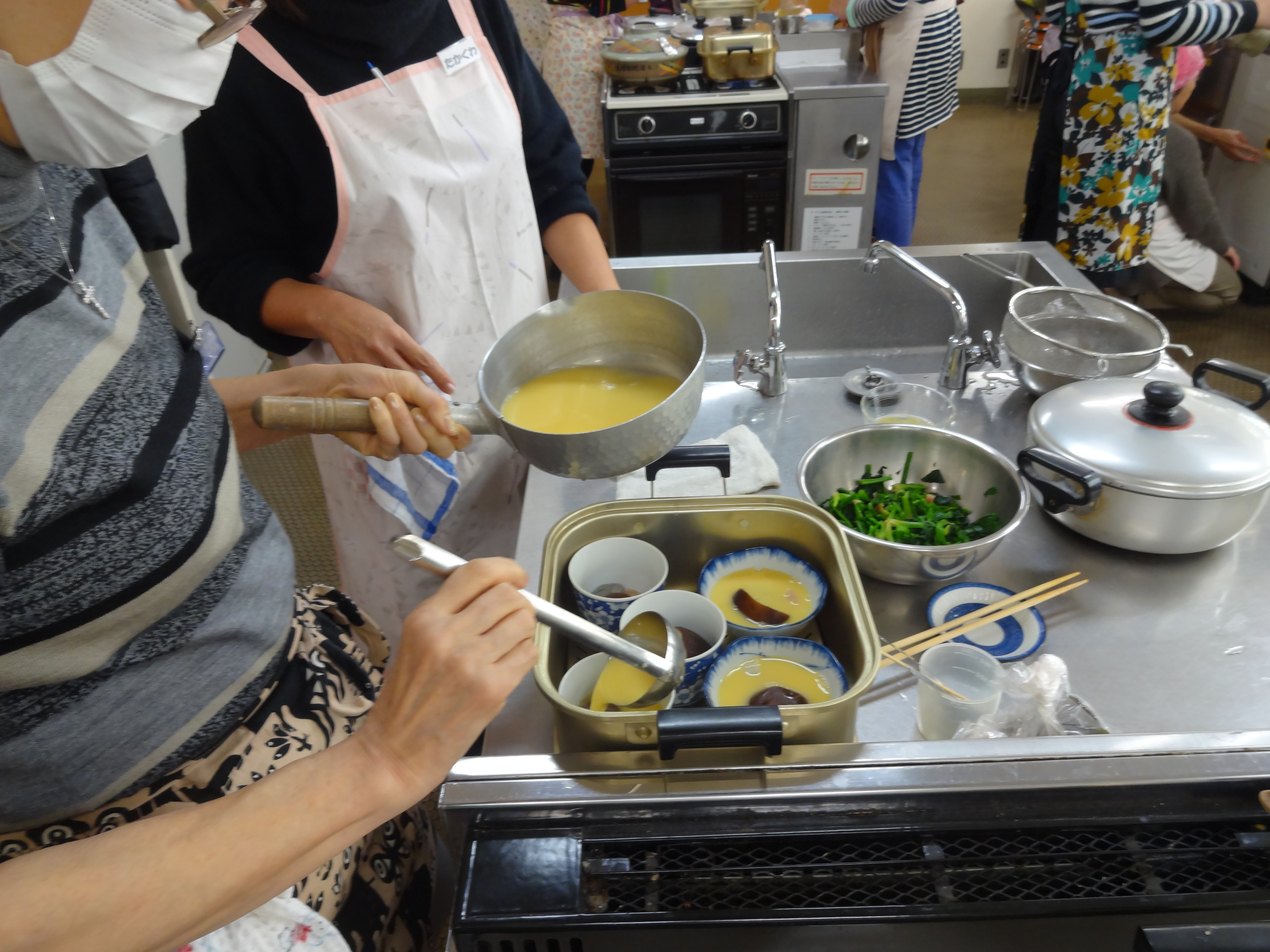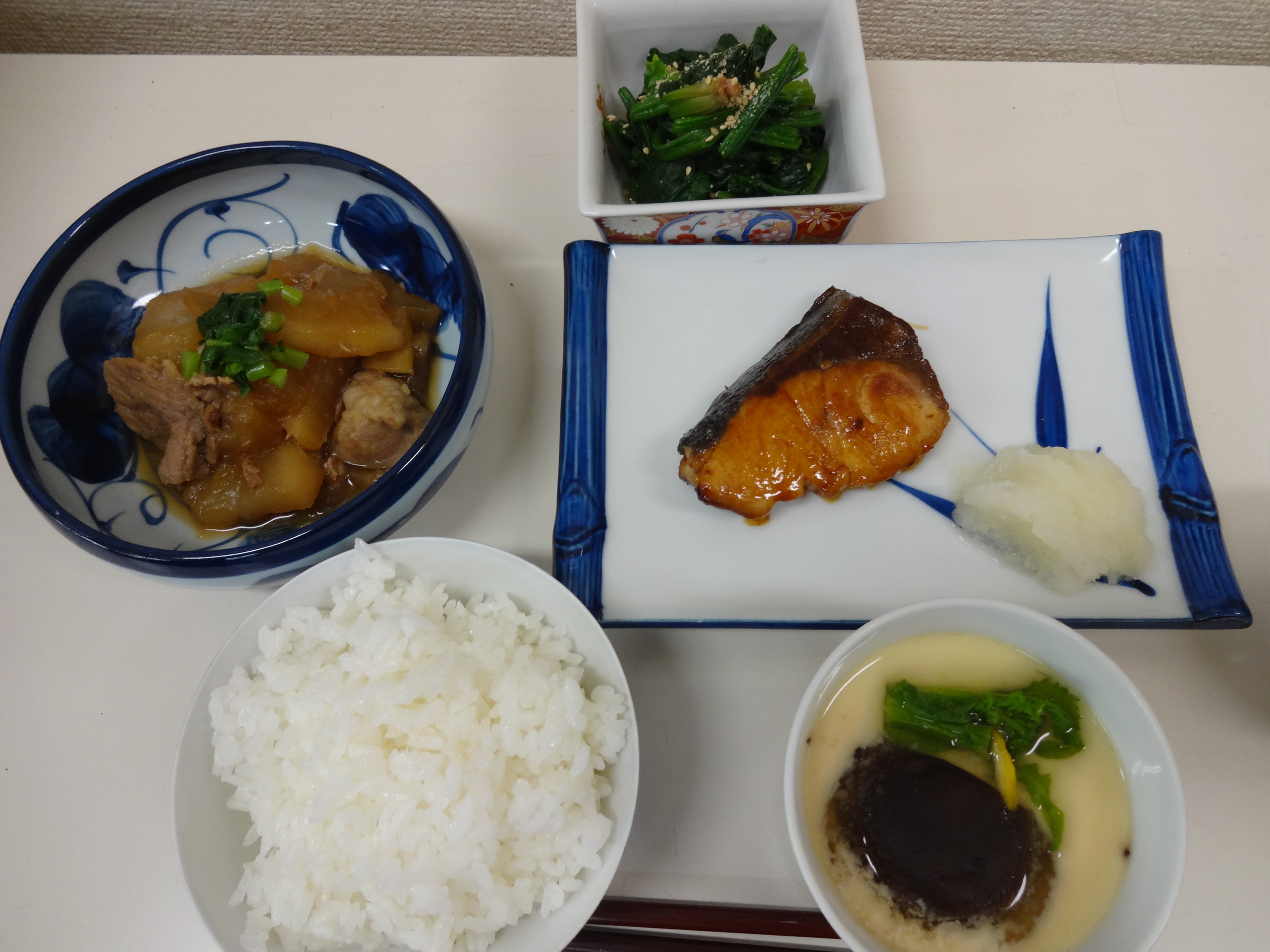 毎回、長谷川先生の講座は定員をはるかに超える申し込みです。 ありがとうございました。 和食のおいしさを改めて知っていただくことができました。 ひと手間で見栄えよくおいしくなることを習いました。 土鍋で炊いたごはん 豚大根 茶わん蒸し 青菜のおひたし ぶりの照り焼き を作りました。