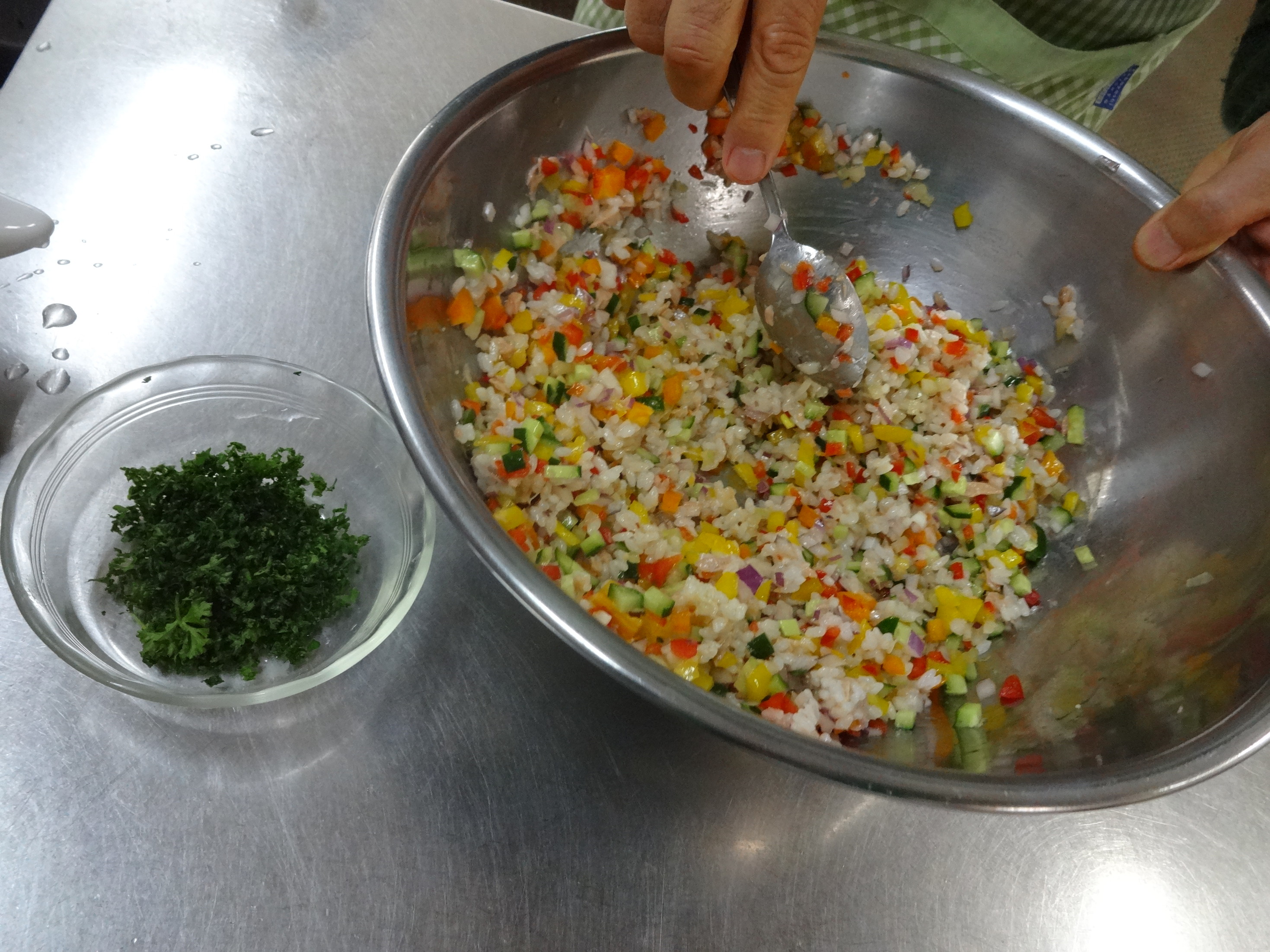 毎回受付開始後すぐに定員に達してしまう人気の川島先生のイタリア料理講座ですが、 今回は増員しての開催でした。 どの料理も手がこんでいて、彩りもきれいで春らしいお献立でした。 講習中のトークもとてもたのしいと、早くも次の予定を聞かれました。 長津田地区センターのHPや館内のチラシを見てください。check!
