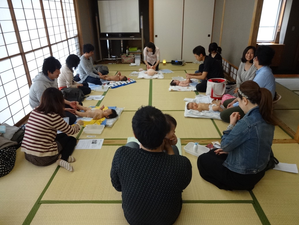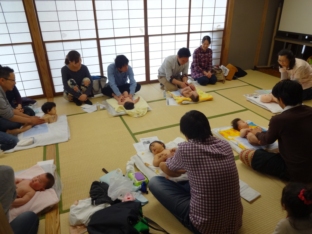 講座の方は、赤ちゃんにマッサージをしながら
