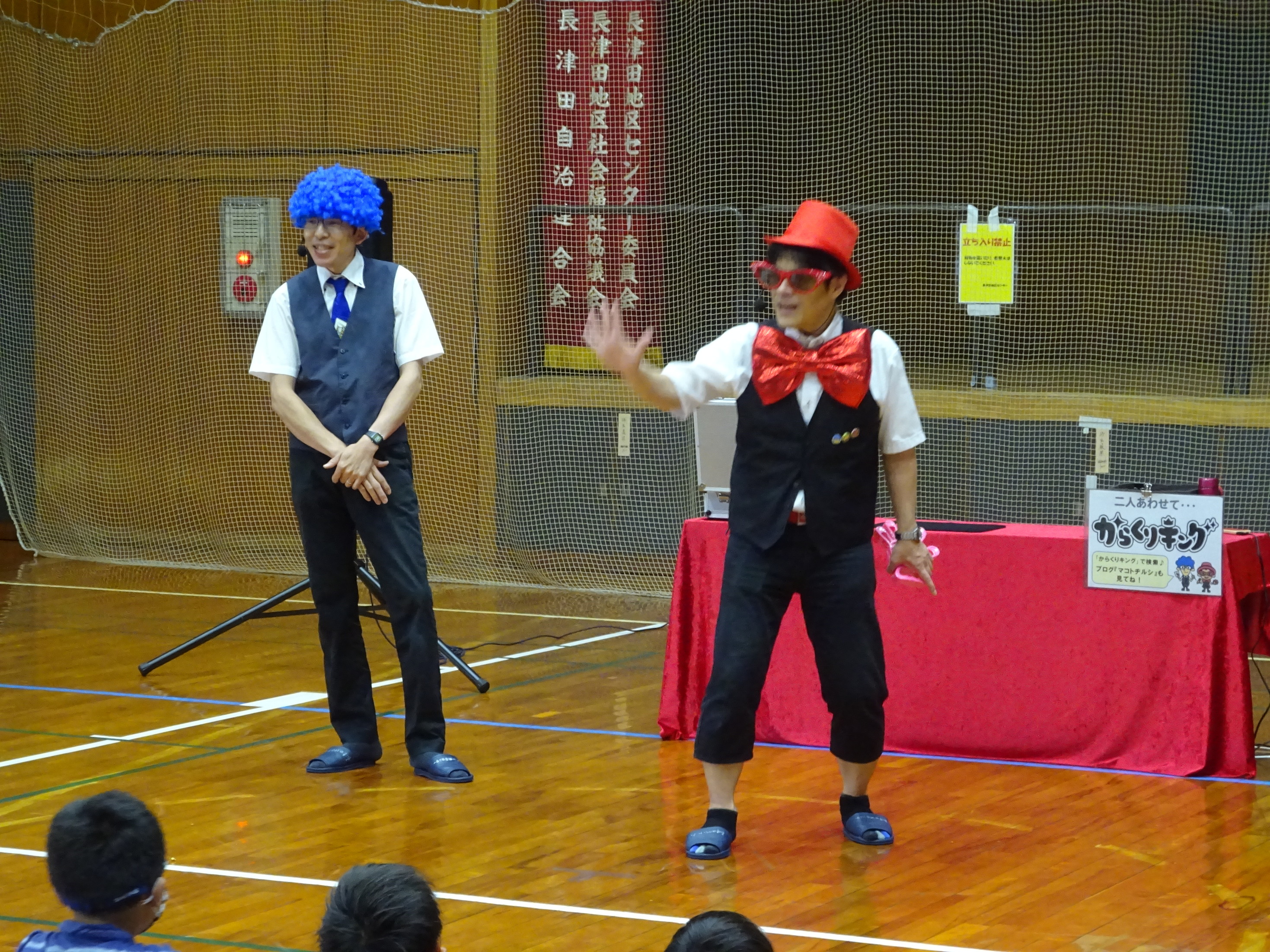 からくりキング「ケロリン一郎」・「ヂルシーまこと」の手品ショー&ワークショップ 未就学児親子、小学生 大勢の子供たちに参加して頂きました。 手品のからくりが分かった時の子ども達のツッコミや笑い声が聞こえる 楽しいショー体験になりました。 ワークショップで作った手品グッズをお友だちや家族に手品を見せてあげて くださいね。