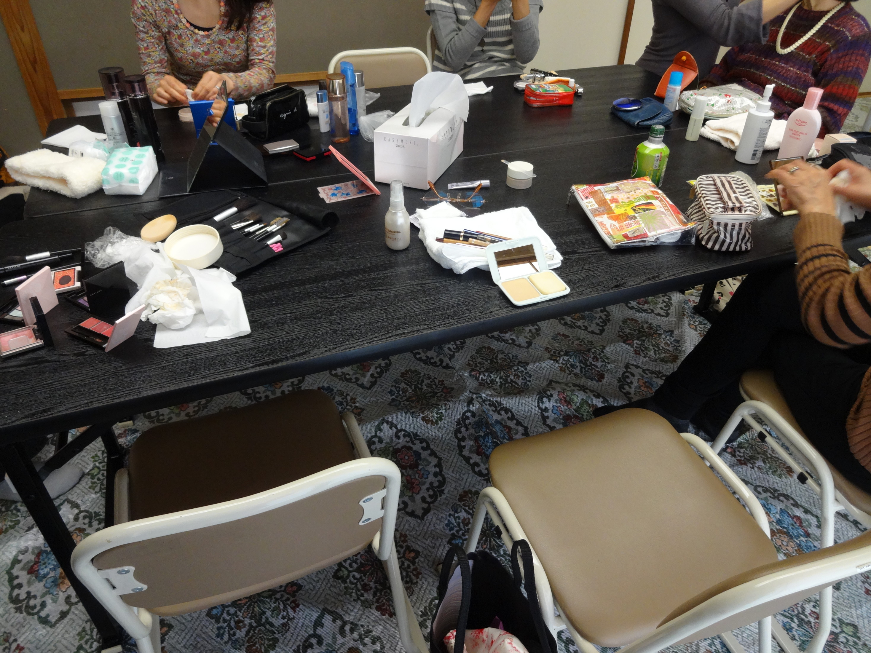 普段お化粧はしていても、正しいお手入れやお化粧も自己流でした。 そこで、今回はクレンジングの仕方や下地の方法などを習いました。 参加された方々にはいらした時よりもいっそうきれいになってお帰りいただくことができました。