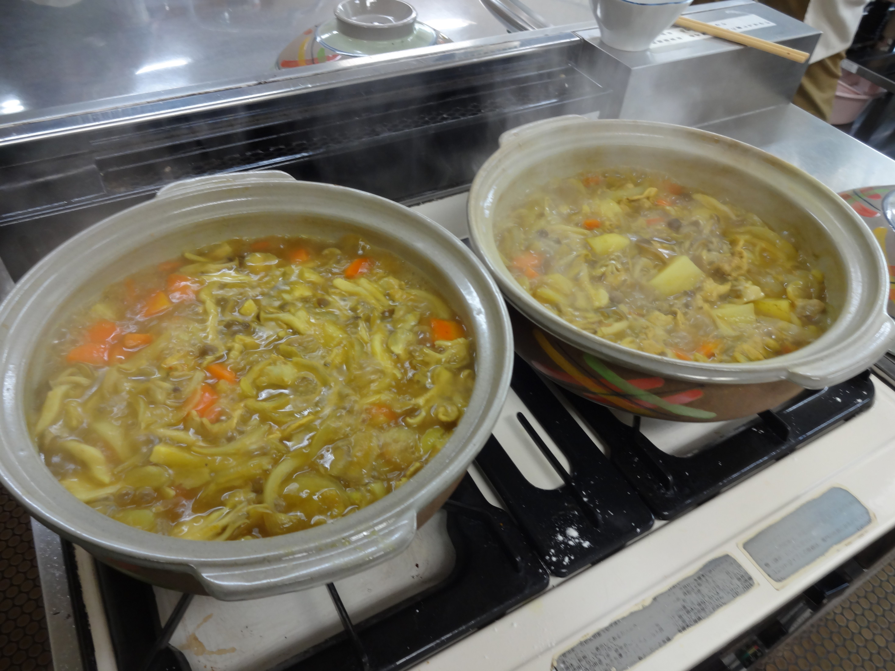 このたびは、地区センターの都合で時間を変更させていただき申し訳ありませんでした。 当日は、少し遅い昼食になってしましましたが、写真のようにおいしそうなカレー鍋が無事完成いたしました。 カレー鍋に、チーズやラー油をかけて召し上がってもおいしいそうです。