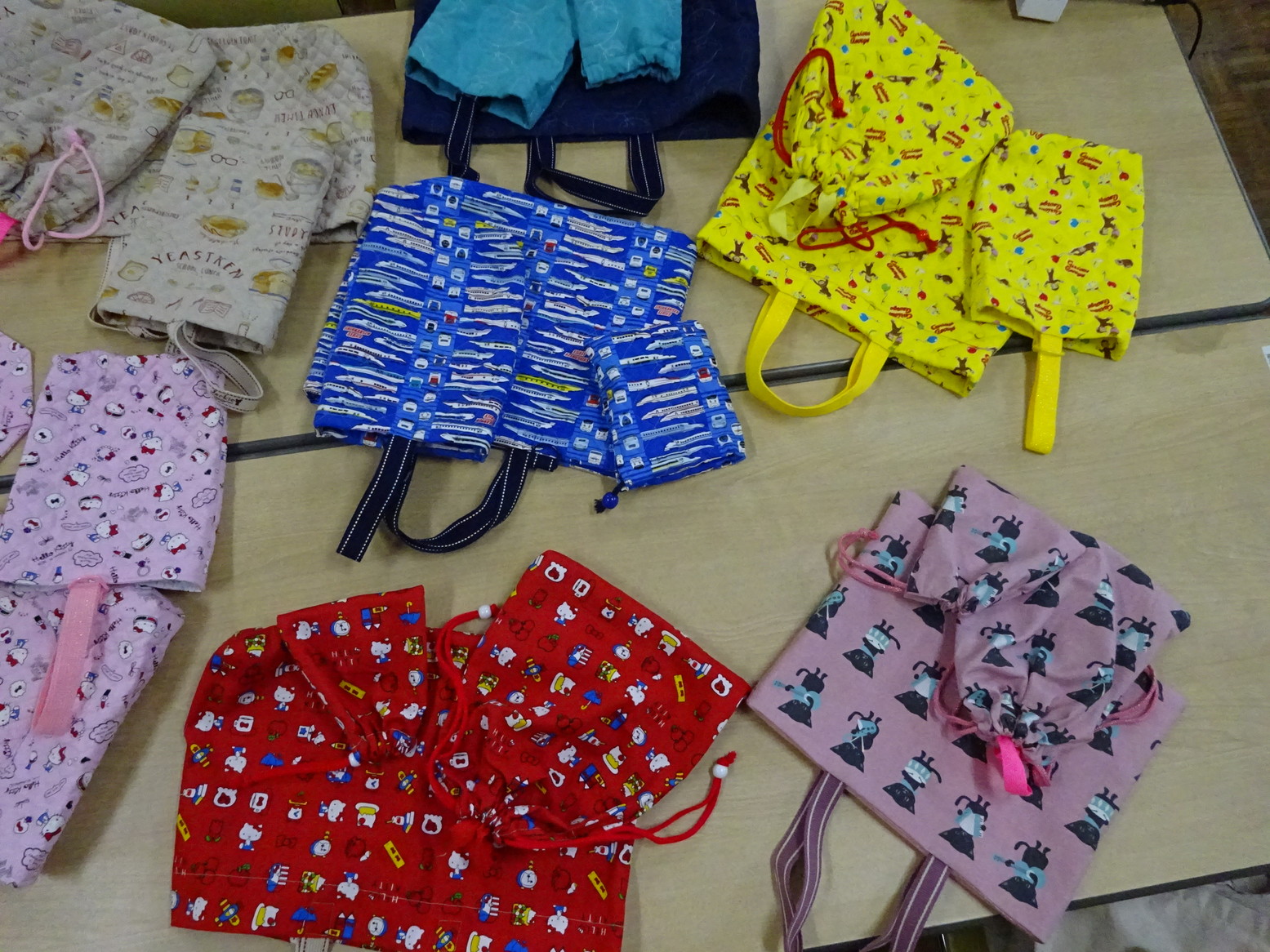 入園・入学準備グッズ作りを開催し レッスンバッグやコップ入れ、上履き入れなど 作りました。 裁縫が久しぶりの方も、講師の分かりやすい丁寧な 指導で作品を仕上げる事ができました。 お子さまの保育預かりがあったので、 集中して作業できました。 楽しく参加出来ました!と 参加者のみなさんに喜ばれる講座でした。
