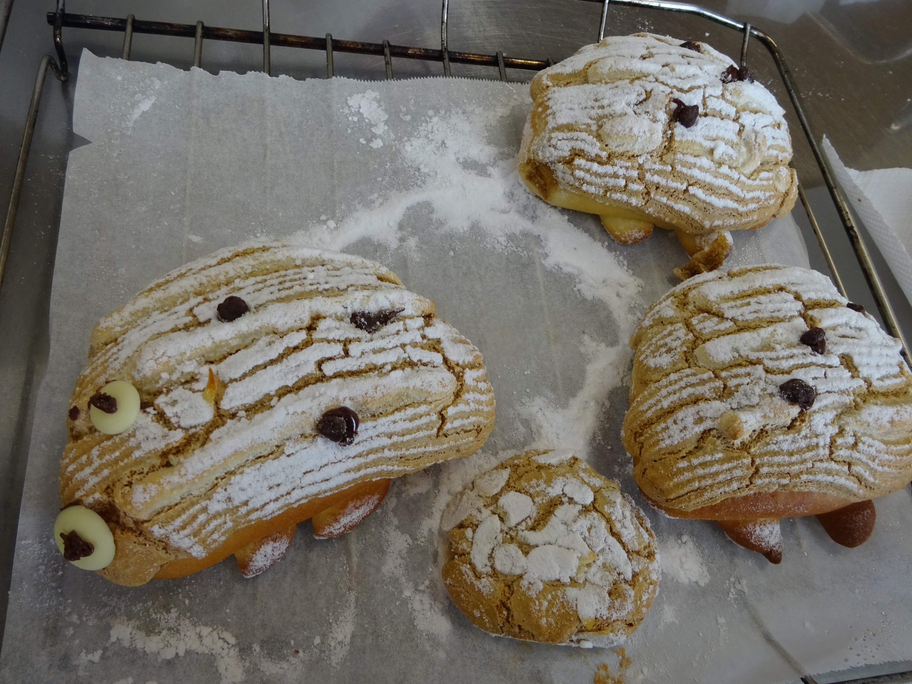 干支イノシシのかたちをしたパンを作りました。 パンの生地や中のクリーム とても美味しく 見た目が可愛いと 参加者のみなさんに好評でした。