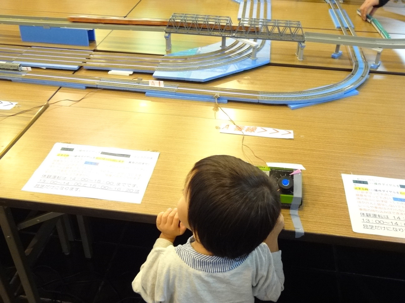 なかでも一番人気は、Nゲージ運転のようでした。実際に自分で、鉄道模型を5周走らせてもらいました。
