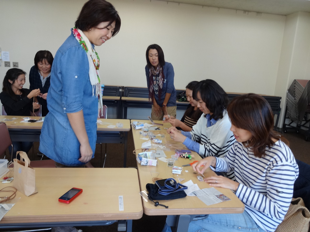 日頃子育てで忙しいママも参加できるように、保育ありアクセサリー作りの講座を行いました。