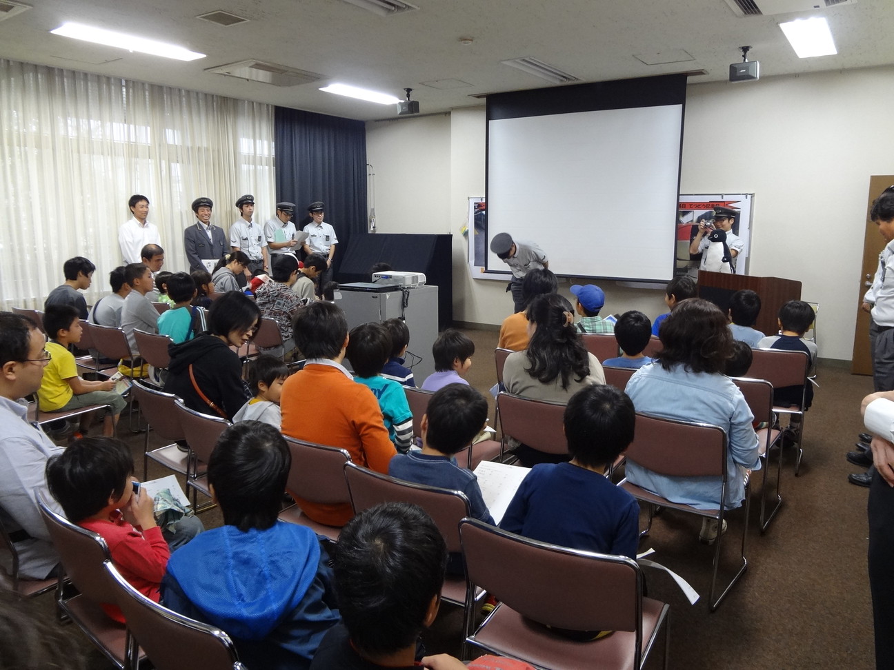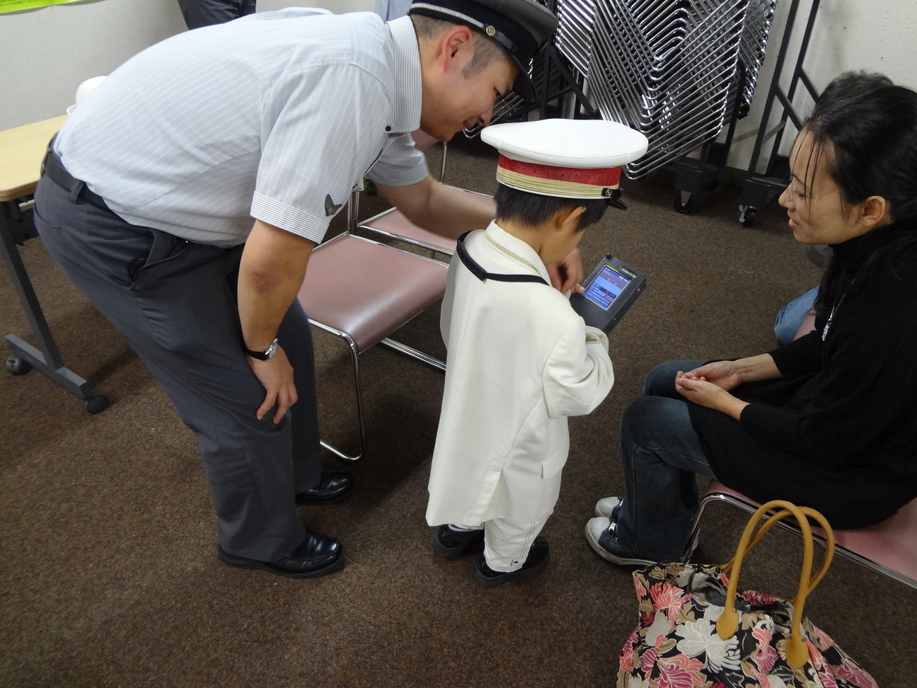 仕事体験、ぬり絵、記念撮影、いろいろな展示、記念切符展示、スライドでの鉄道歴史、クイズ、非常ベル体験、Nゲージ運転など半日では、足りないほど盛りだくさんのメニューでした。