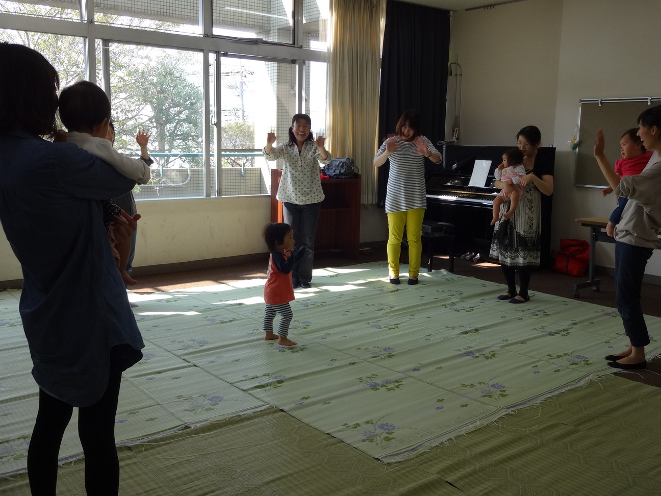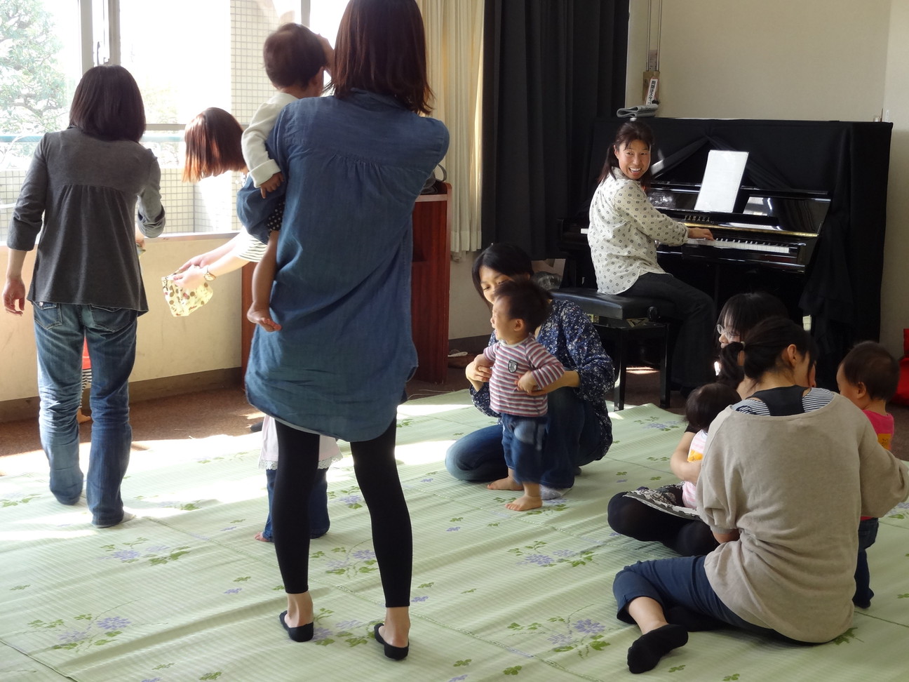 山田先生の指導で、少しずつ不安感を取り除き、音楽に合せて楽しくからだを動かしたり、ママとベビーが一緒に遊べる工作をしたりと積極的に楽しんでいます。