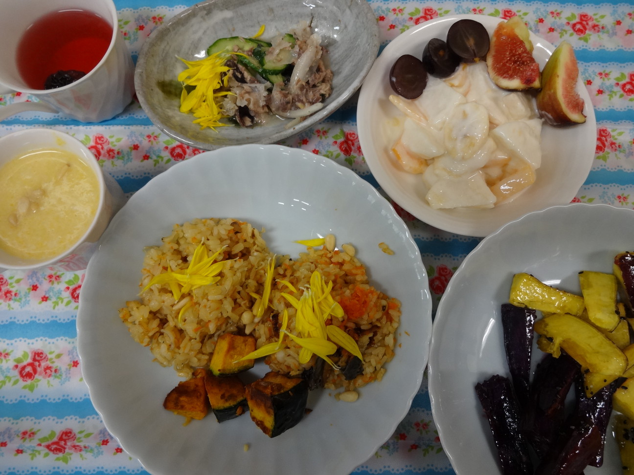 雨の中お庭を歩いたり和室から眺めながらお食事をされたりと自由に秋のひと時を楽しみました。