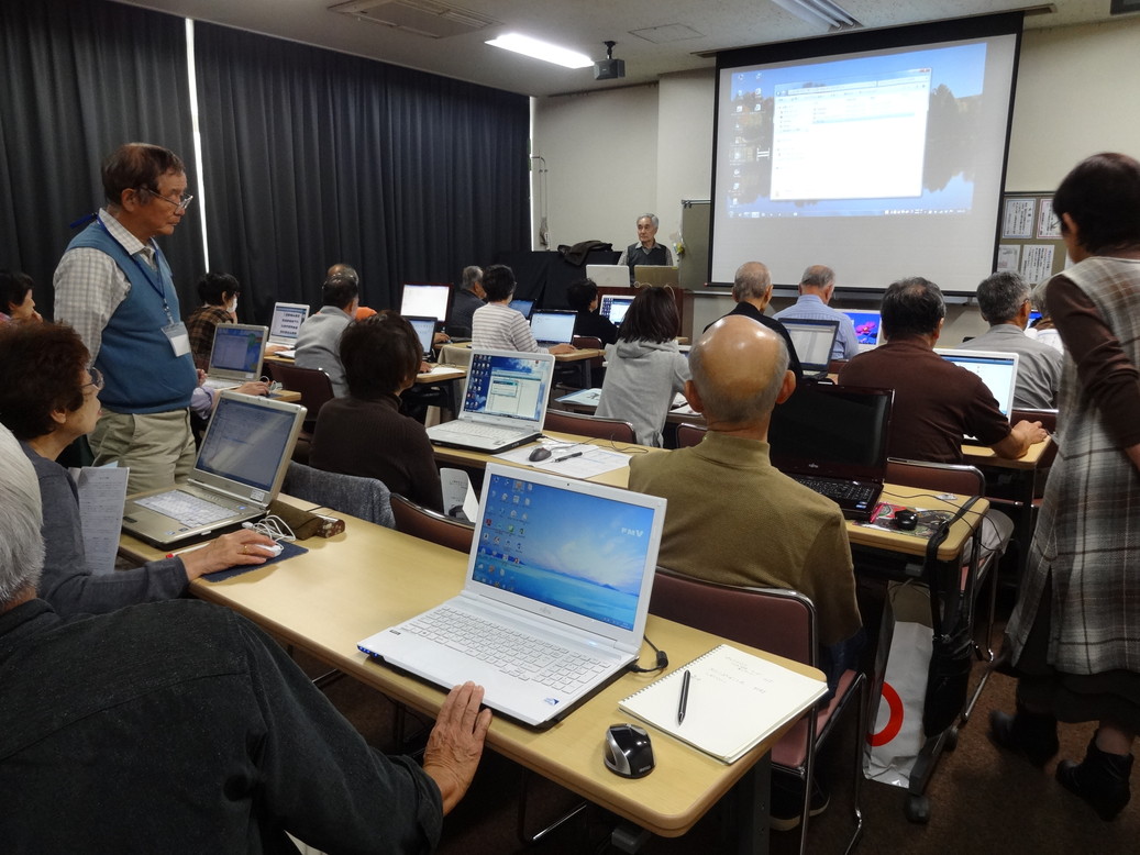 参加者はご自身のパソコンを持参しパソコンの知識を学び、 日頃のわからないことの質問もあり、熱心に参加されていました。