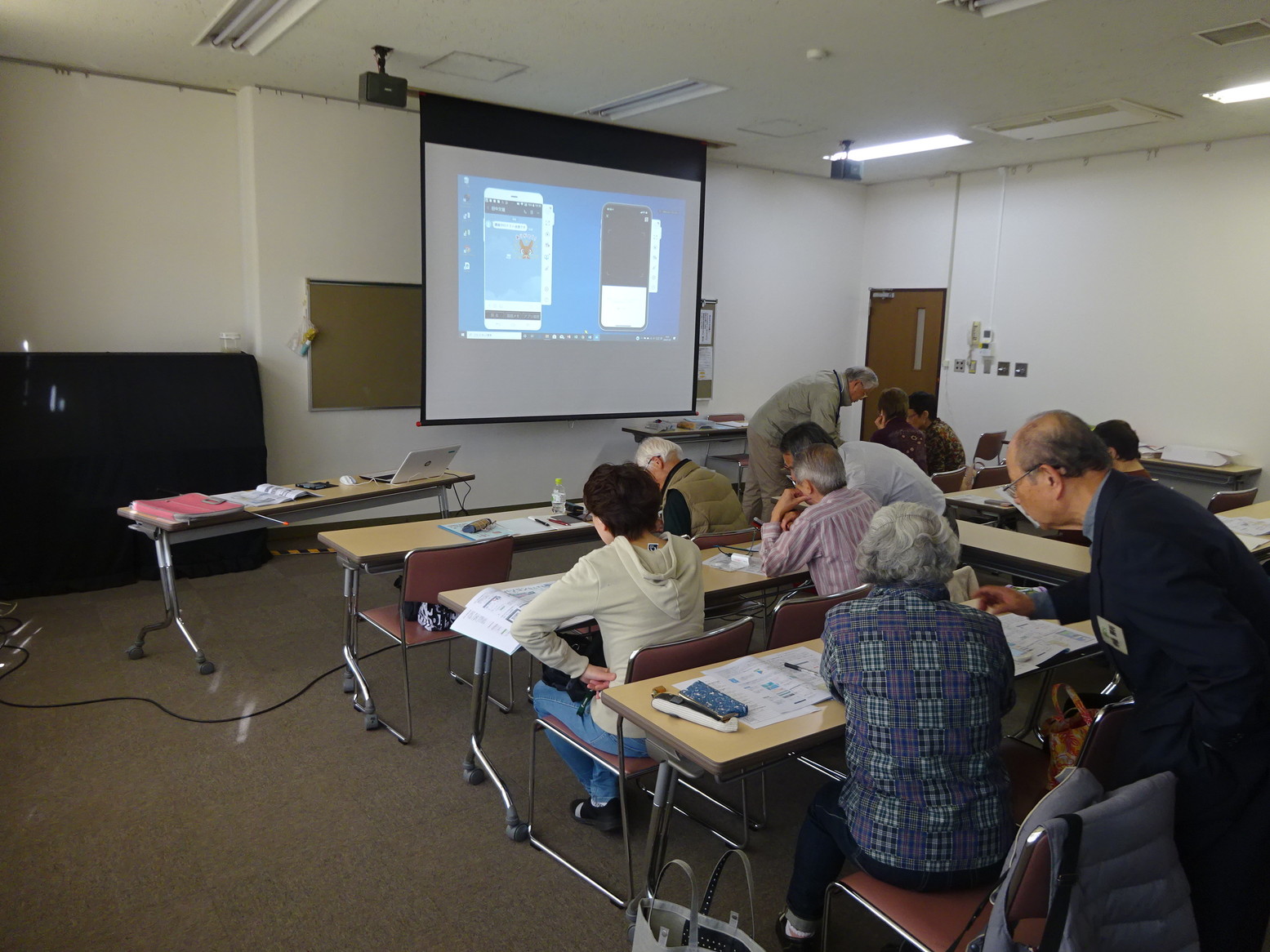 LINE(ライン)を 安全に楽しむための基礎知識を学べる講座を 開催しました。 参加者の皆さん 熱心に聞かれて、実際にスマートフォンの 操作をされていました。