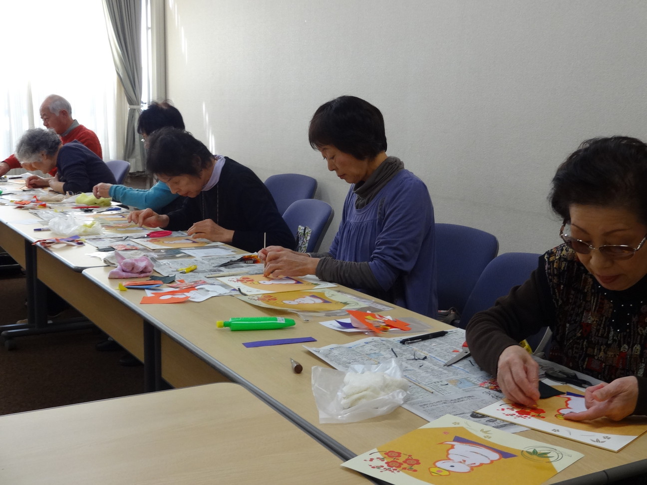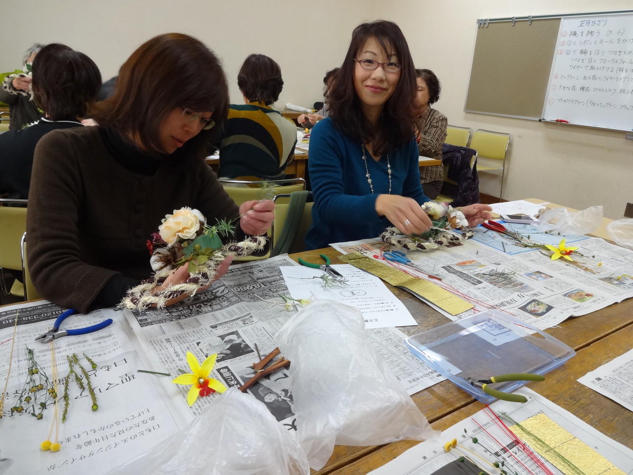 止めていきます。みなさんうまく止めることができ、正月飾りが完