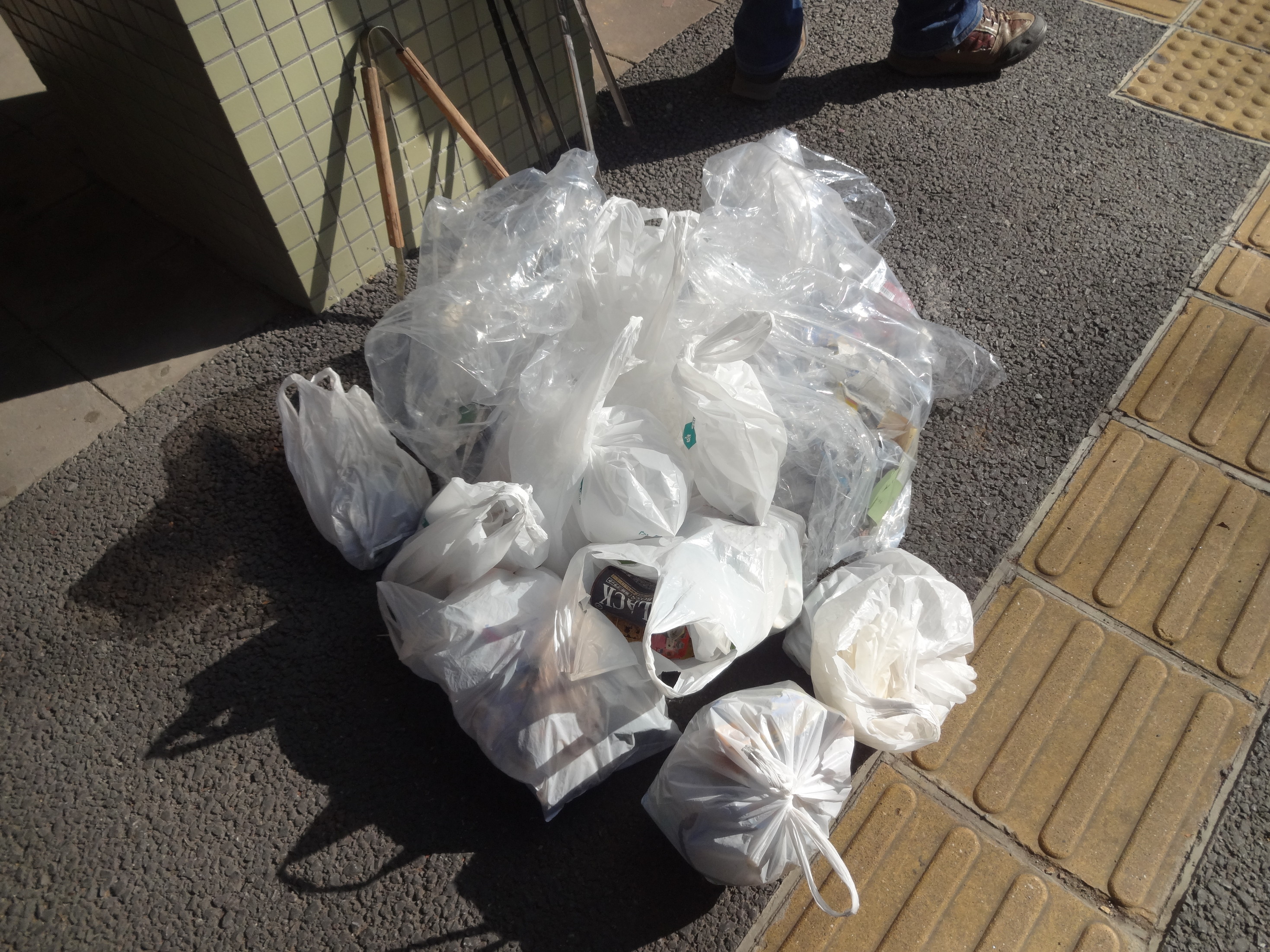 ごみは食べ物の包み紙や買い物袋、紙ごみやミカンの皮、飲料缶やビンなどなど・・・