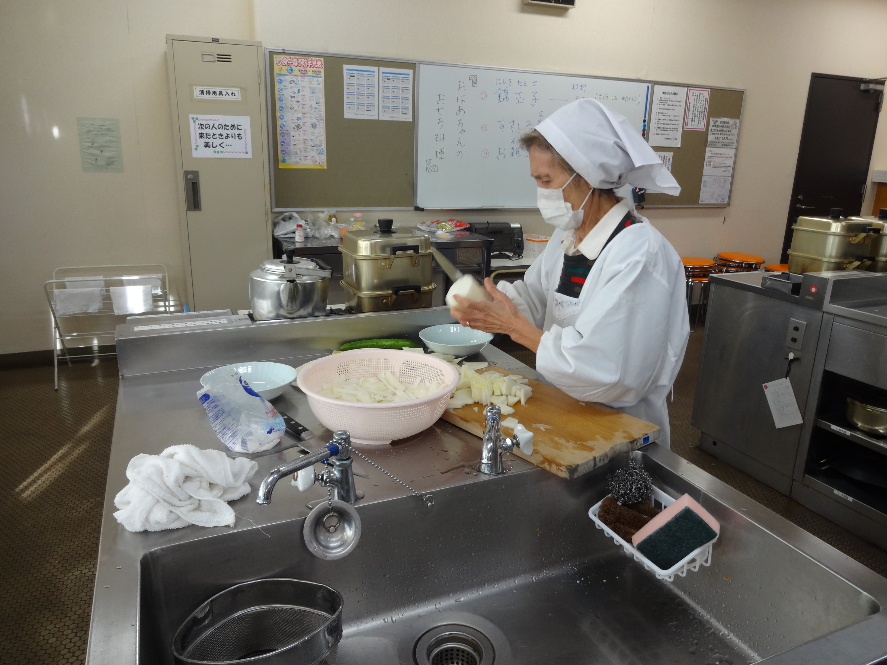 今日の料理教室は、地域に住んでいる料理の上手なおばあちゃんにおせち料理を教えてもらいました。
