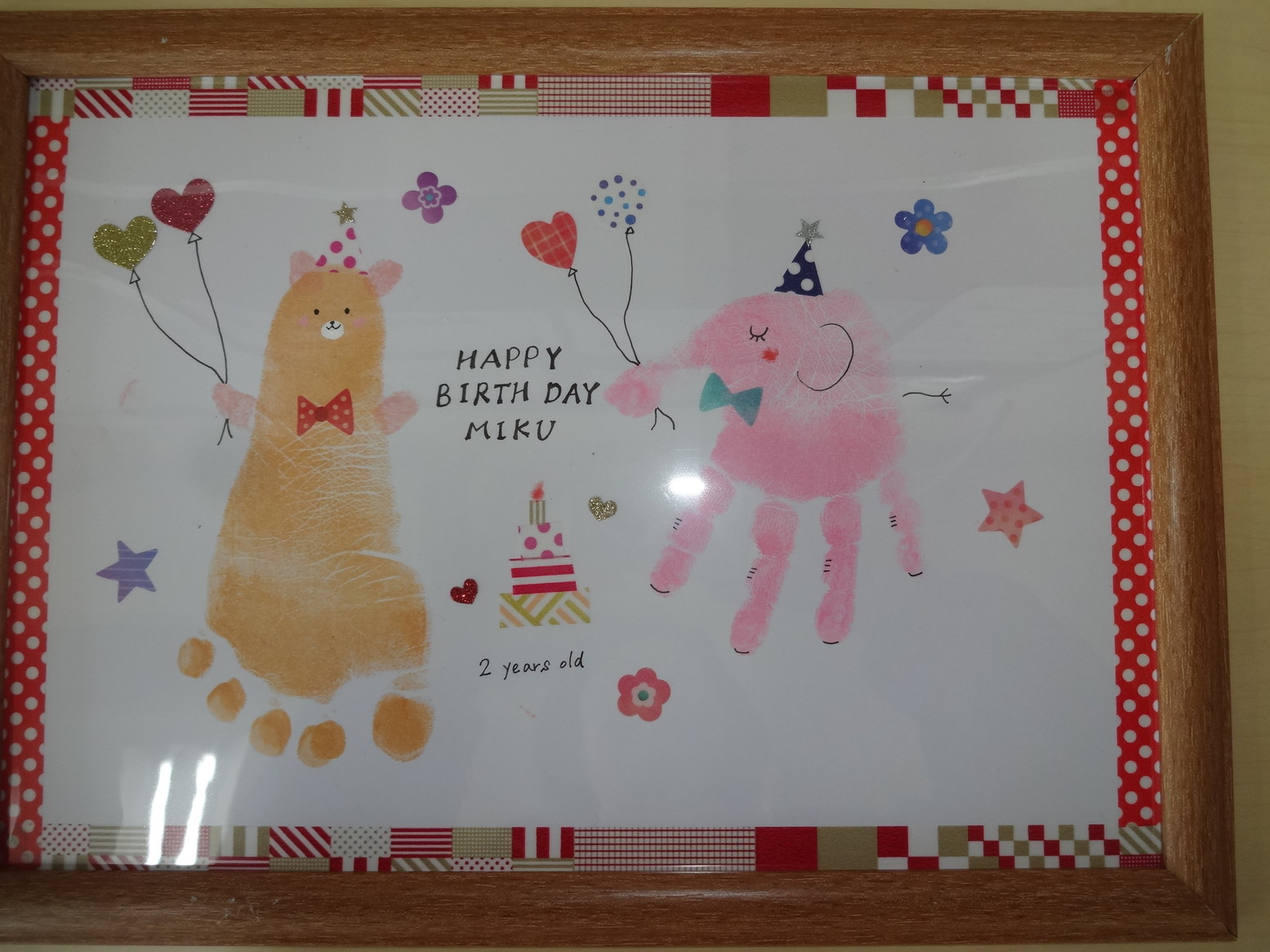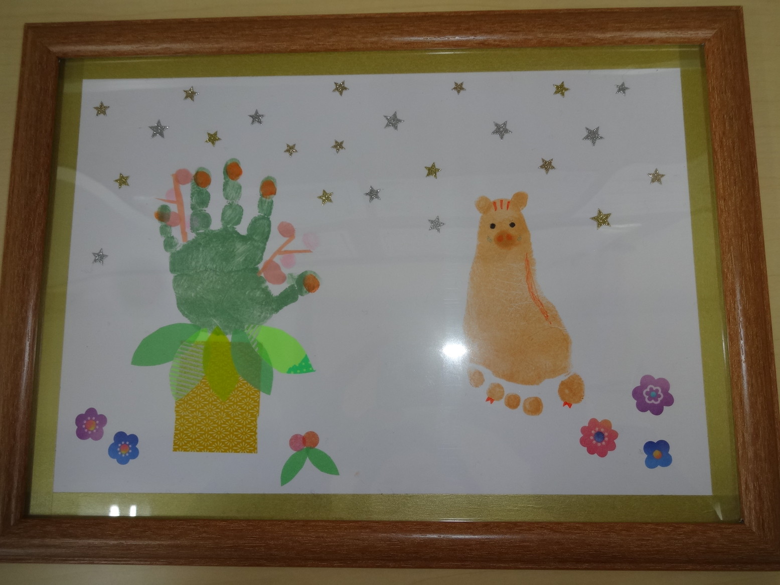 大勢の親子の皆さんに参加して頂きました。 とても和やかな雰囲気の中 子どもたちの可愛らしい手形・足形でアート 記念になる作品が出来上がっていました。