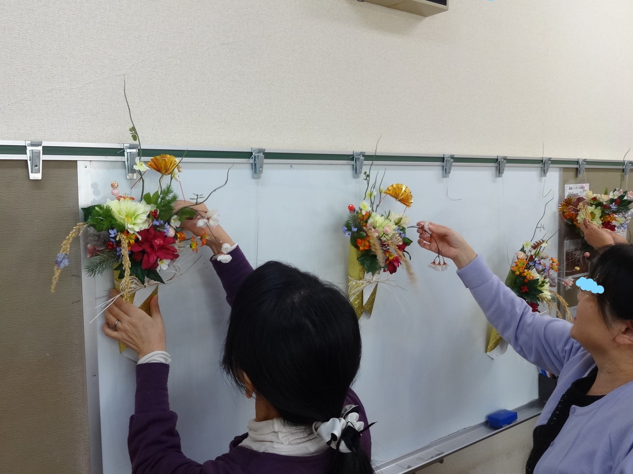 お正月飾りをアレンジメントで作る講座を 開催しました。 おしゃれなアレンジメント飾りが 出来上がりました。