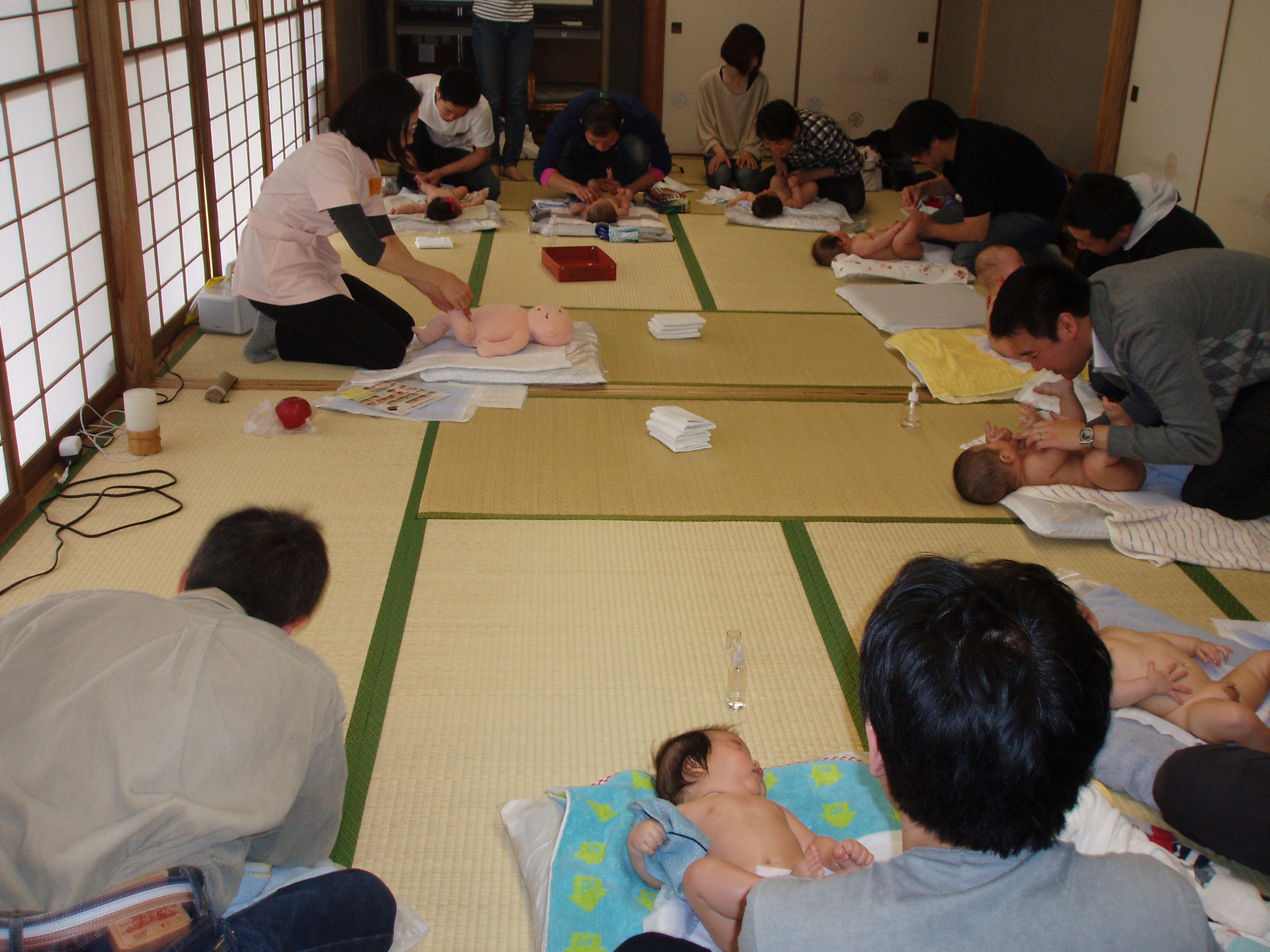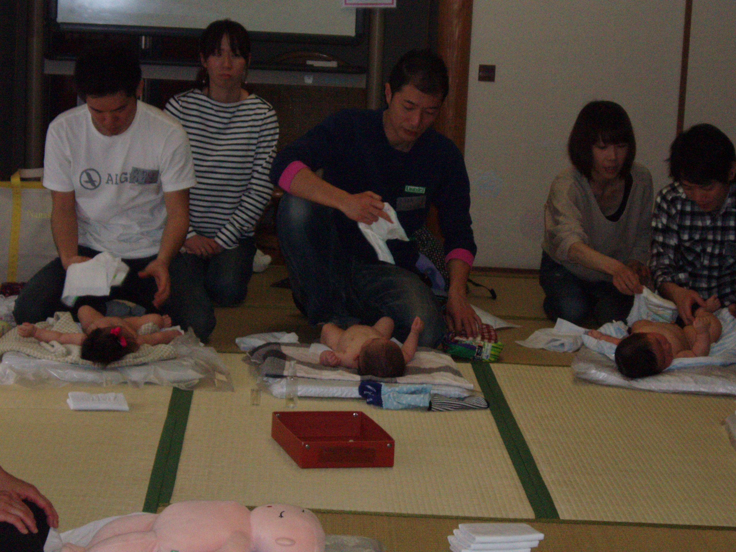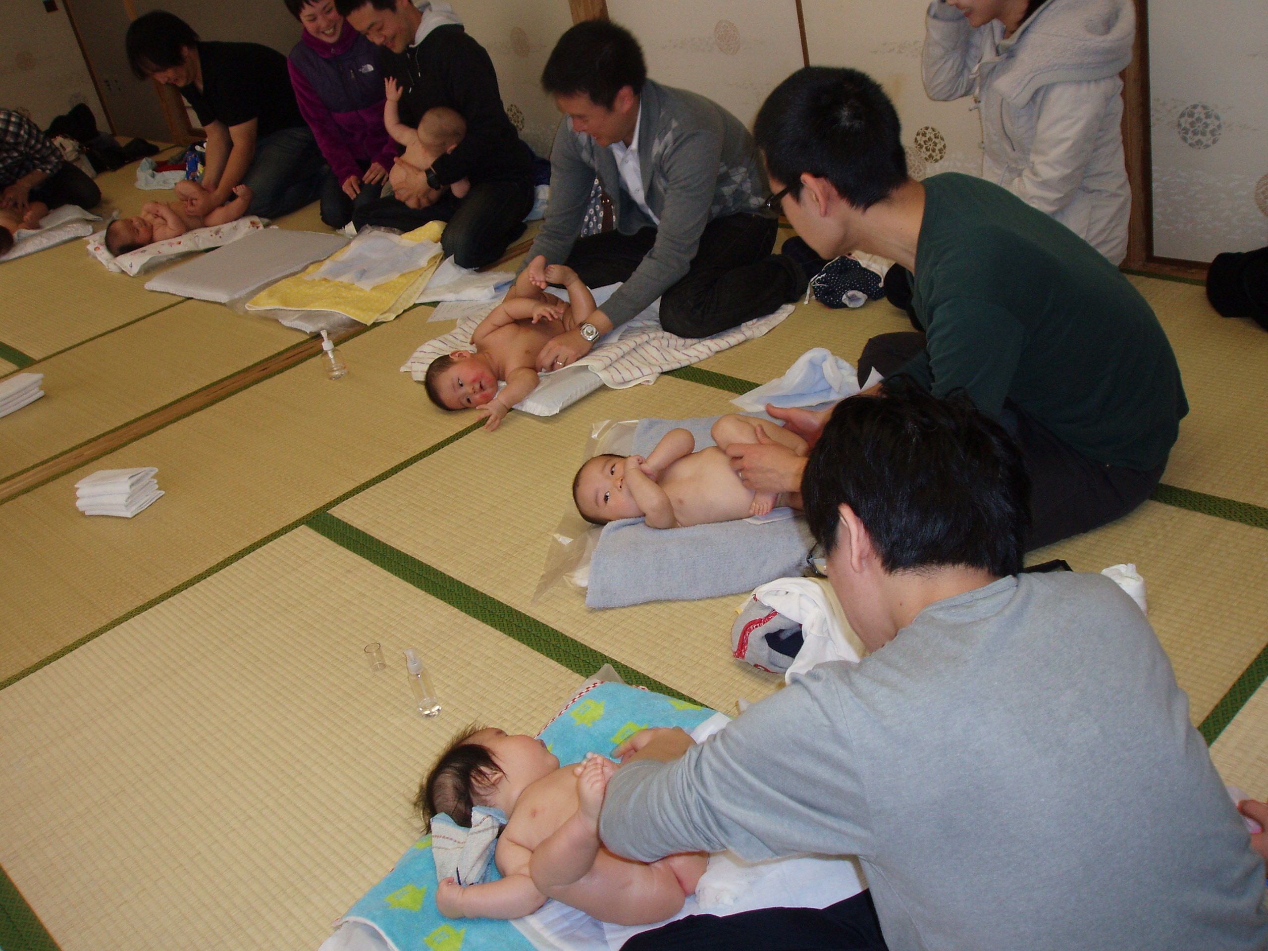 どのお父さんも慣れない手つきで一生懸命です。