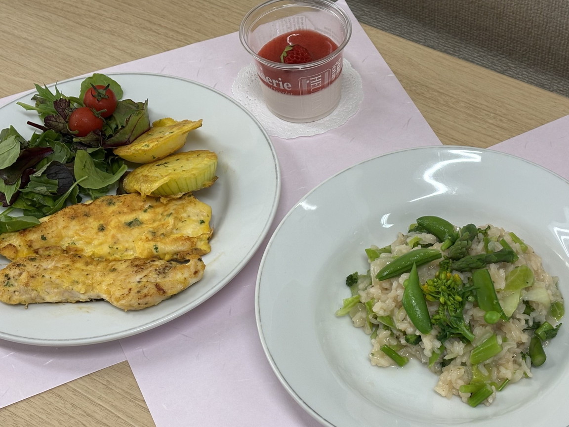 野菜ソムリエ講師による料理講座 春の訪れを感じられる料理講座を開催しました。 楽しかったです。たいへん参考になりました、 家で早速作ってみます などの感想を頂きました。 メニュー ・春野菜たっぷり リゾット ・チキンピカタ ・苺のパンナコッタ