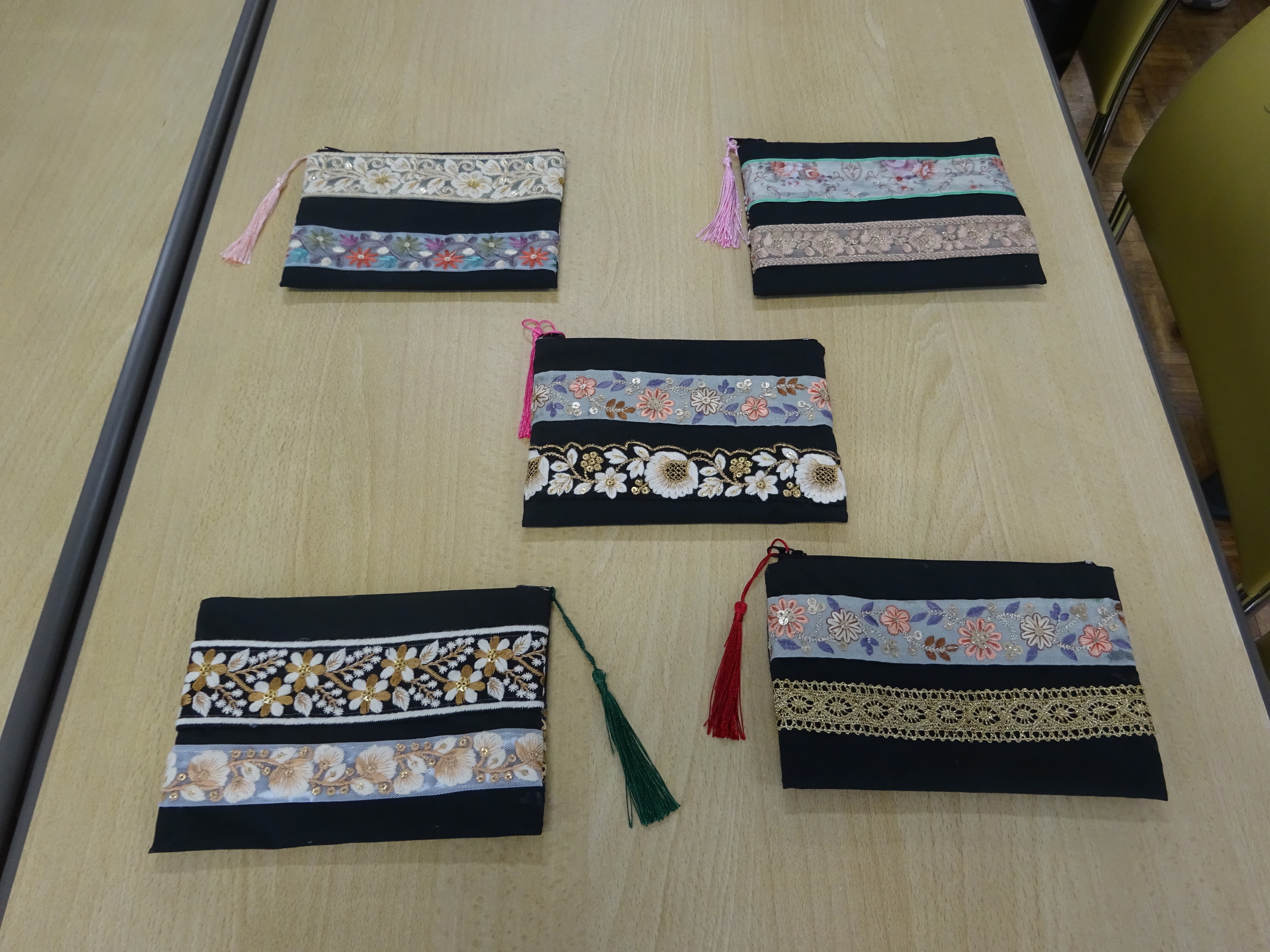市販のビニールポーチに生地を貼り、 リボンやタッセルを飾りつけた ポーチ作り講座を開催しました。 市販のビニールポーチを使って簡単に作れるので 参加者のみなさまに好評でした。
