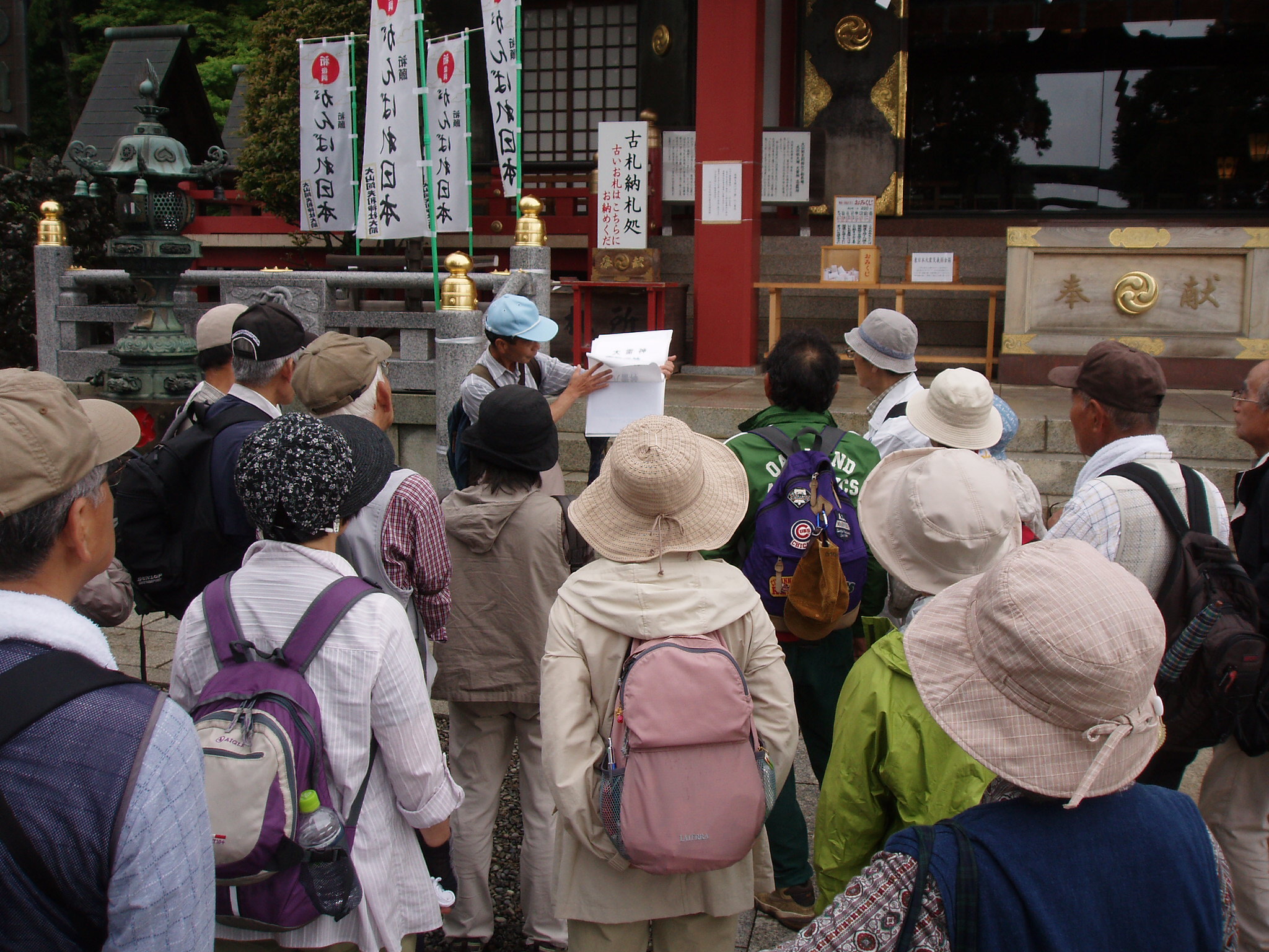 愛甲石田~石倉橋バス停までの見どころを、ガイドの久保田さんに説明をうけながら大山街道を11km程