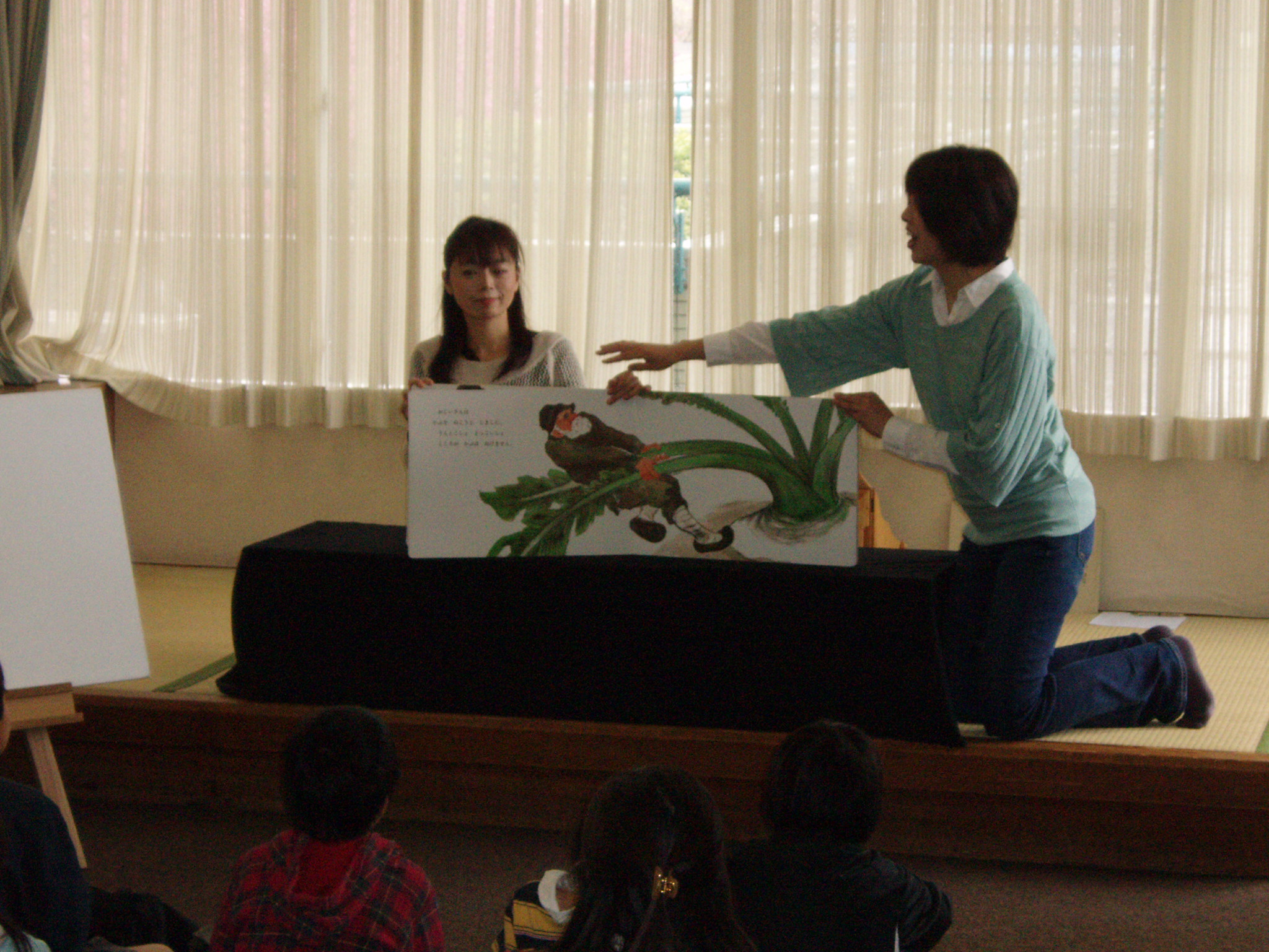 みんなで掛声をいっぱいかけて紙芝居の綱引きをしました。
